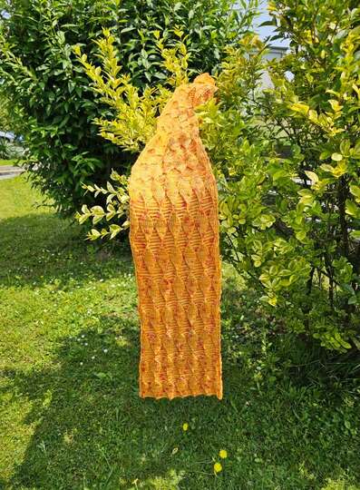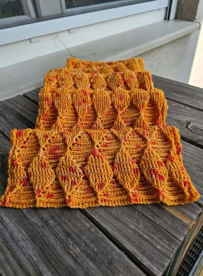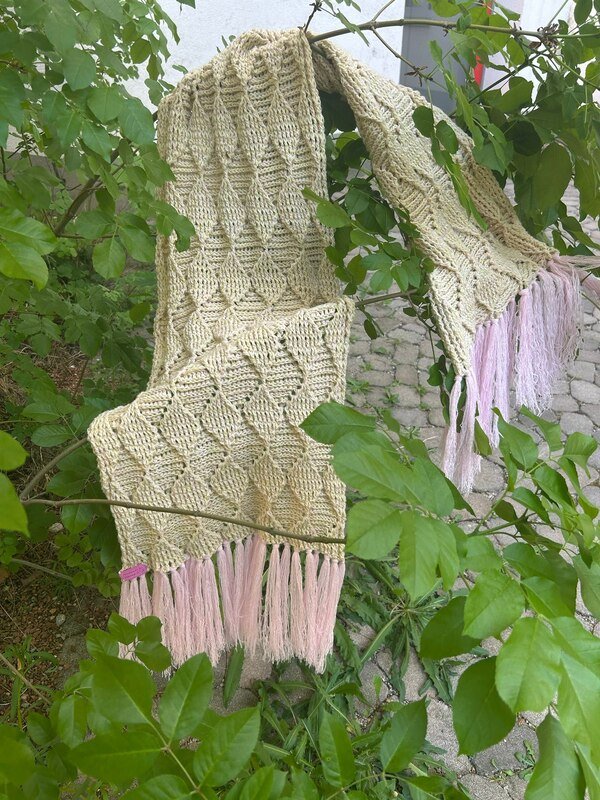 Der Schal kann in jeder beliebigen Größe gehäkelt werden, da sich die Reihen wiederholen. Bitte beachte, wenn du eine andere Wolle verwendest, eine andere Nadelstärke, oder generelle lockerer/fester häkelst, kann die Größe variieren.