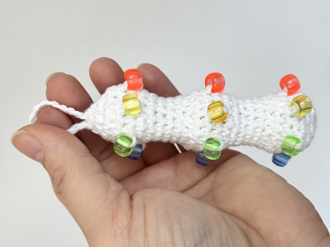 Häkle dein eigenes Fidget-Spielzeug in Form einer Erbsenschote, das gleichzeitig als praktischer Taschenanhänger dient! Dieses interaktive Sensorik-Spielzeug enthält eine Murmel / Kugel, die durch enge Stellen der Schote gedrückt werden kann – perfekt zur Stressbewältigung, Förderung der Feinmotorik und zum Entspannen.