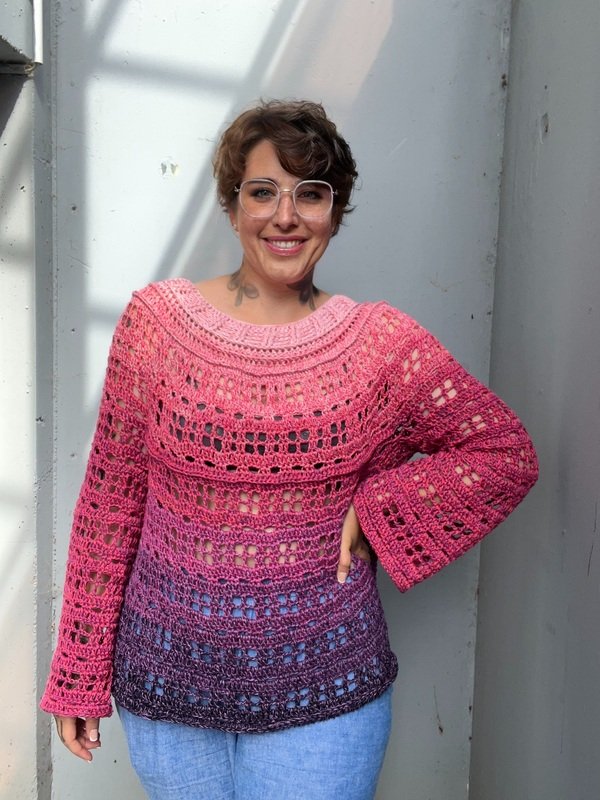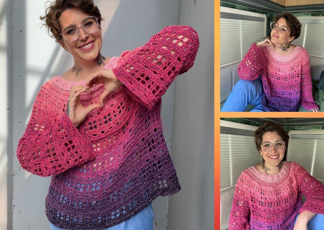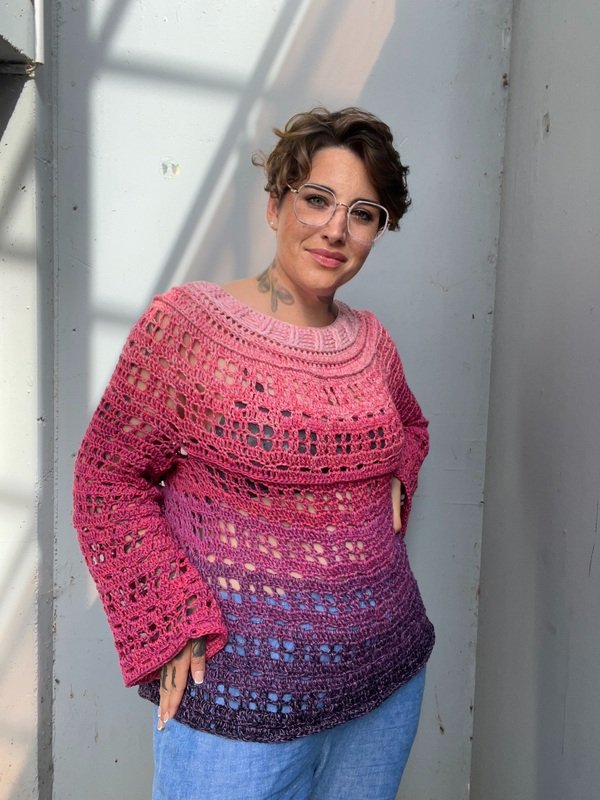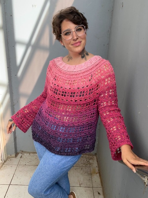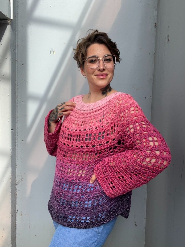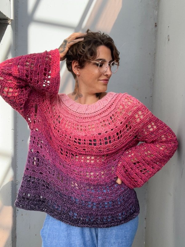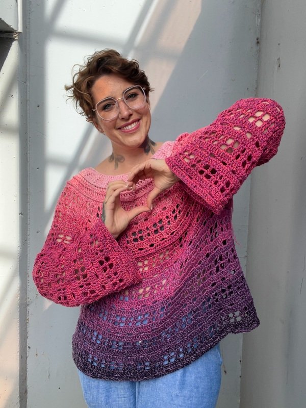 Diese neue Anleitung bringt nicht nur frischen Wind in deinen Kleiderschrank, sondern auch jede Menge gute Laune auf die Häkelnadel. Der Pulli wird von oben nach unten gearbeitet – das heißt: keine nervigen Nähte, keine Rechenakrobatik, einfach Masche für Masche Sommerfreude.