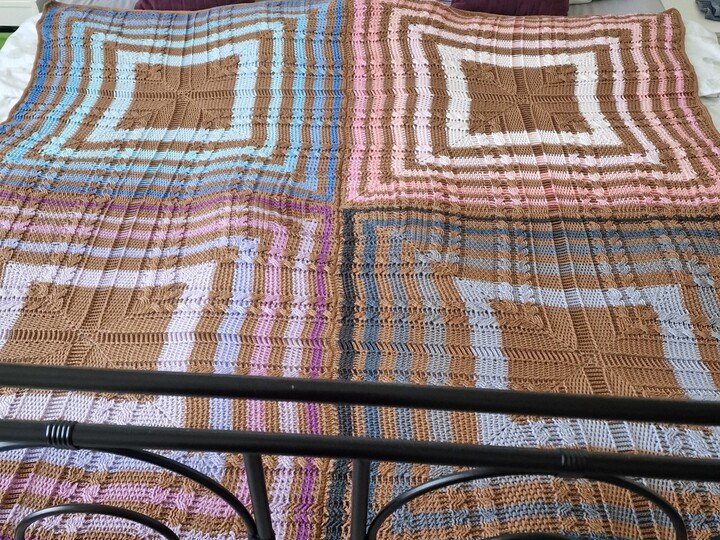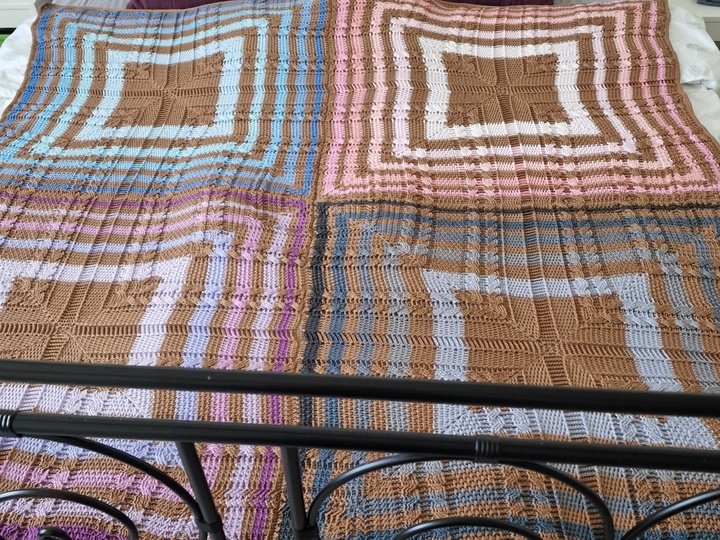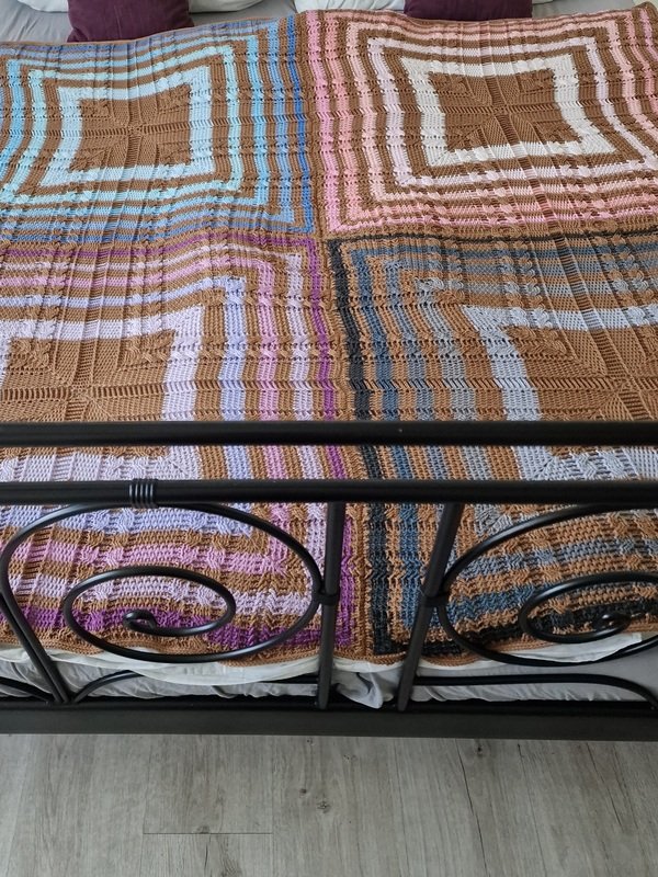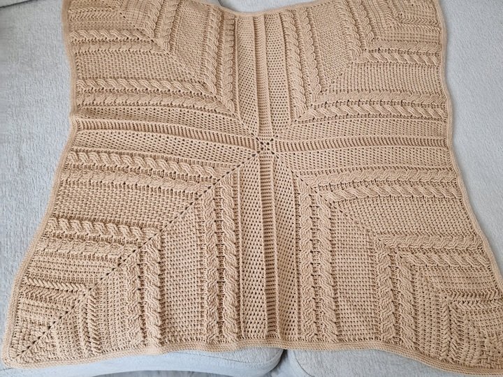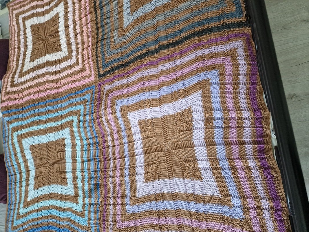 Ein einzelnes Quadrat wird 75x75cm oder 80x80cm, je nach Garnstärke.