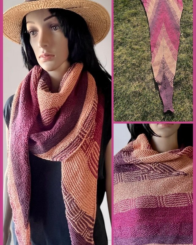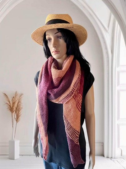 Das fertige Tuch ist 250 cm lang und an der breitesten Stelle 65 cm breit