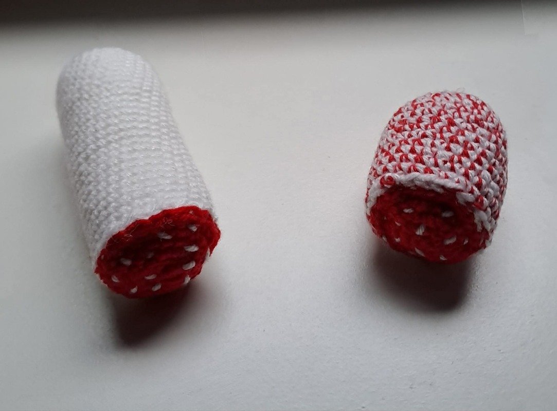 Mit dieser Schritt für Schritt Häkelanleitung könnt ihr ganz einfach eine Salami am Stück + Scheiben für die Spielküche häkeln.