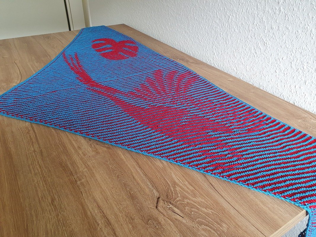 Das fertige Tuch hat bei mir eine Größe von etwa 175cm (Breite) x 78 cm (Tiefe).