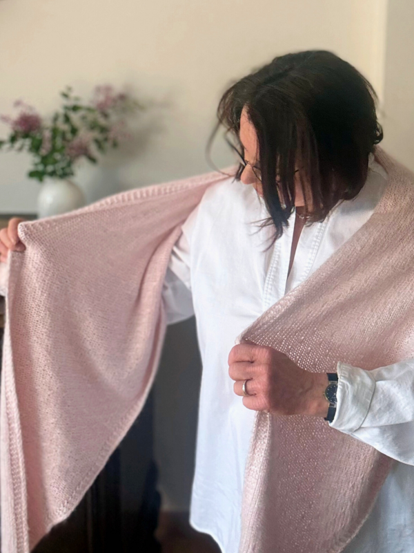 LALEA Grande ist ein klassisches Schultertuch mit geradem Mittelteil – klar strukturiert und angenehm zu tragen.