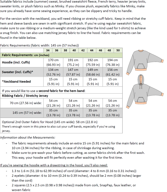 Grundkenntnisse im Nähen von dehnbaren Stoffen (z. B. Jersey oder Sweat) sind hilfreich.