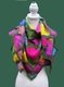Es ist leichter als es aussieht, da immer nur mit einem Faden gestrickt wird. Es eignet sich auch hervorragend, um einen ganzen Berg Wollreste zu verarbeiten. Das Tuch wird mit großen Nadeln locker gestrickt und ist deshalb sehr leicht. Trotzdem wärmt es angenehm.