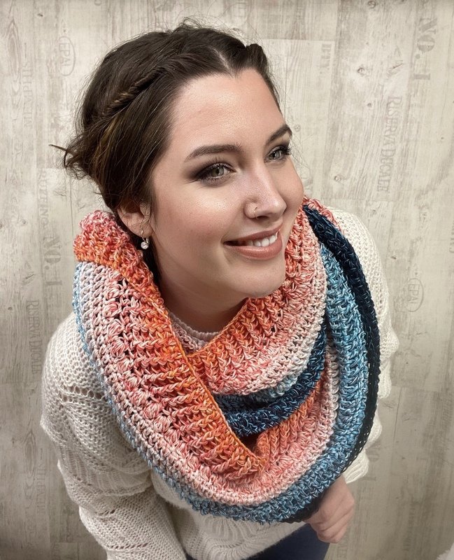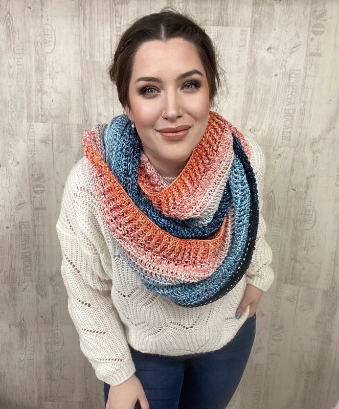 Der Loop Maritima lässt sich ganz flexibel an deine Wünsche anpassen – du kannst ihn beliebig groß oder klein arbeiten. Ob enganliegend oder locker fallend, kurz oder besonders kuschelig lang: Du entscheidest selbst, wie dein persönlicher Wohlfühl-Loop aussehen soll.