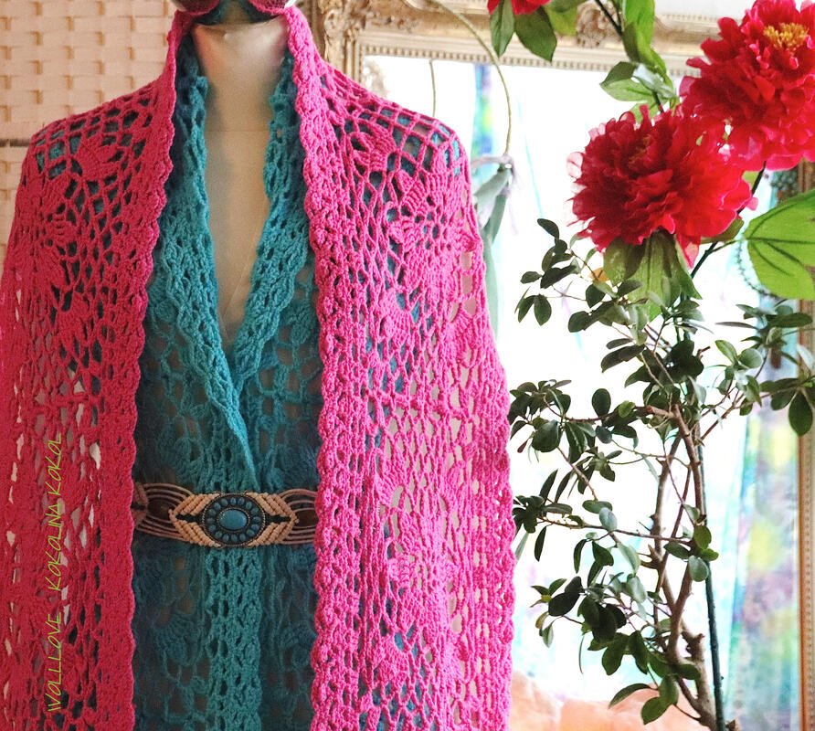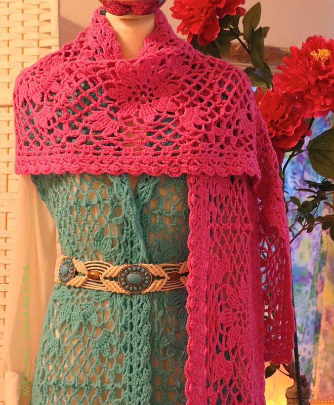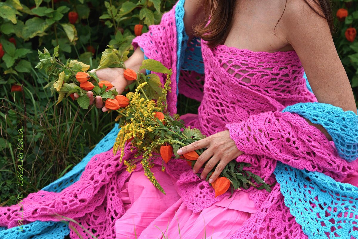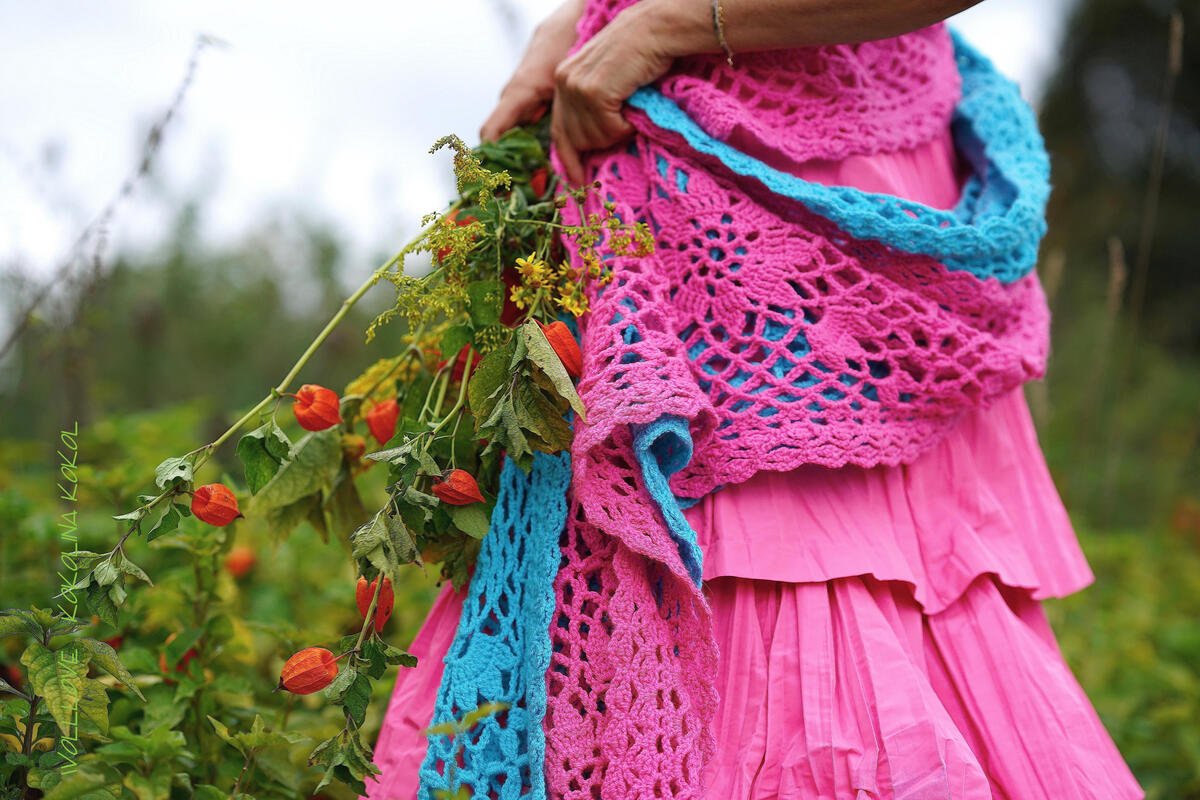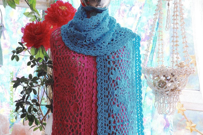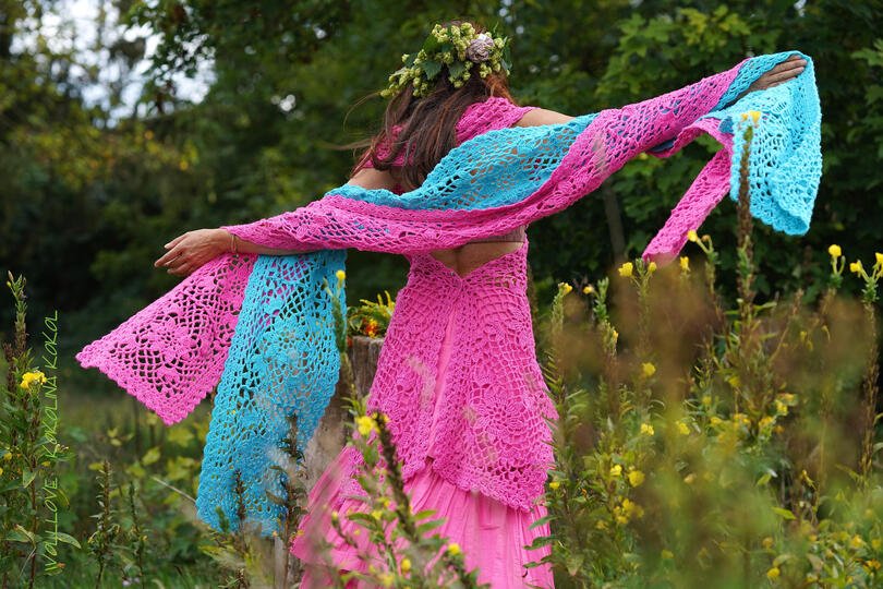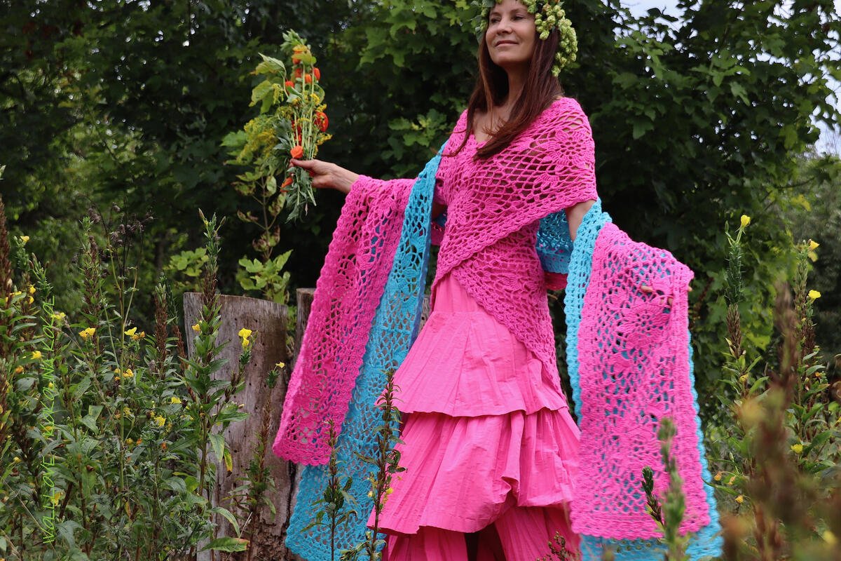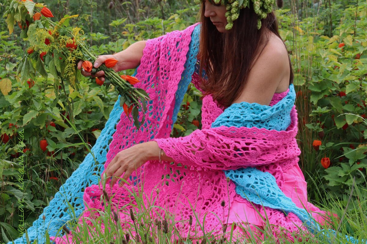 Tauche ein in den Zauber von Sommerwiesen und wilden Blüten, mit diesem luftigem Häkel Schal