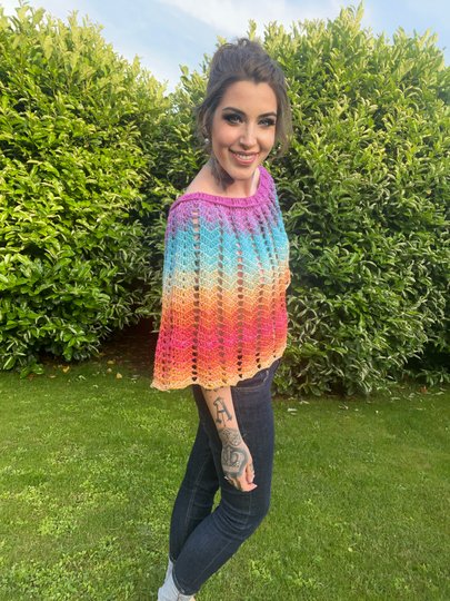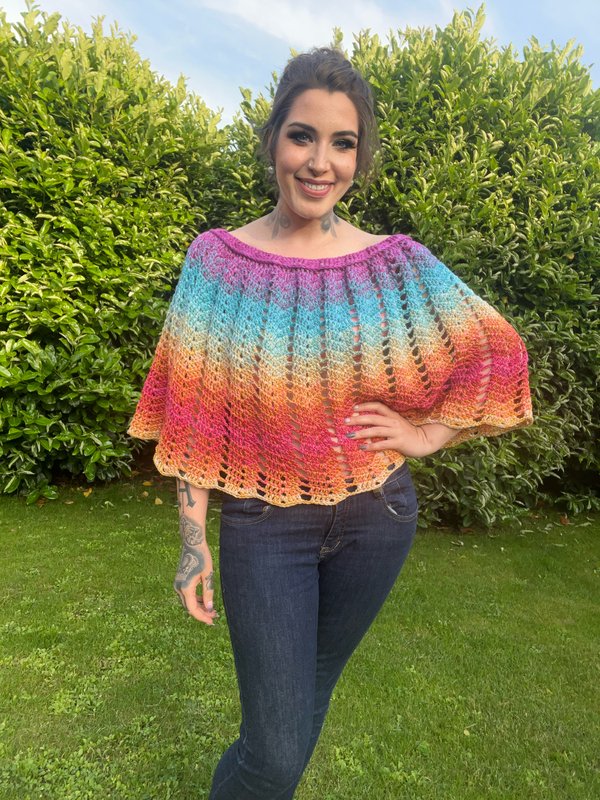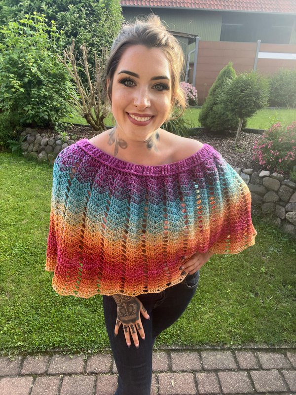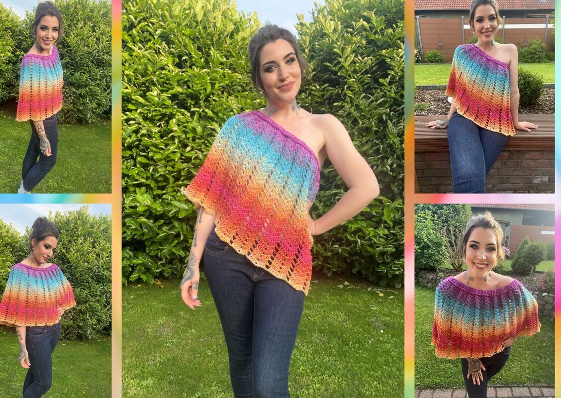 Lust auf Sommer auf der Haut und ein Häkelprojekt, das nicht nur gute Laune bringt, sondern auch richtig was hermacht? Dann ist der Schulter-Schmeichler Rainbow genau das Richtige für dich!