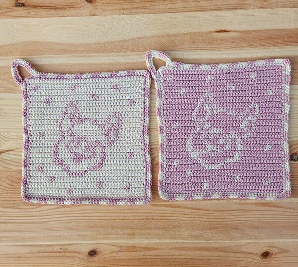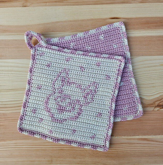 Diese Topflappen sind der Klassiker unter den gehäkelten Topflappen. Sie schützen die Hände nicht nur vor z.B. zu heißen Topfgriffen, sondern sie verschönern auch jede Küche. Gleichzeitig können sie auch als Untersetzer verwendet werden.