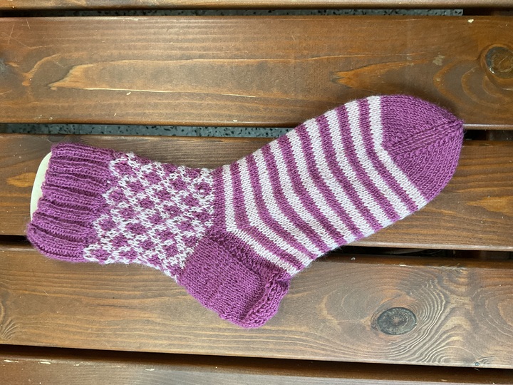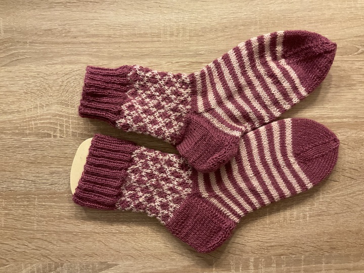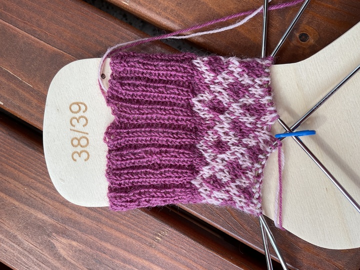 (ideal für Stricker*innen mit ersten Sockenprojekten, die sich ans zweifarbige Stricken wagen möchten)