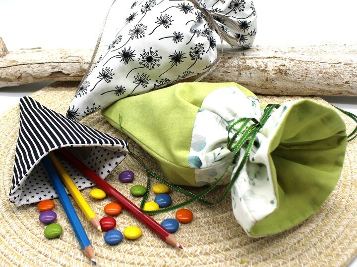 Kleiner Stoffbeutel in Form einer Zuckertüte, Schultüte oder Spitztüte. Kleinigkeiten zum Schulanfang verschenken oder Spitztüten für den Kaufladen nähen.
