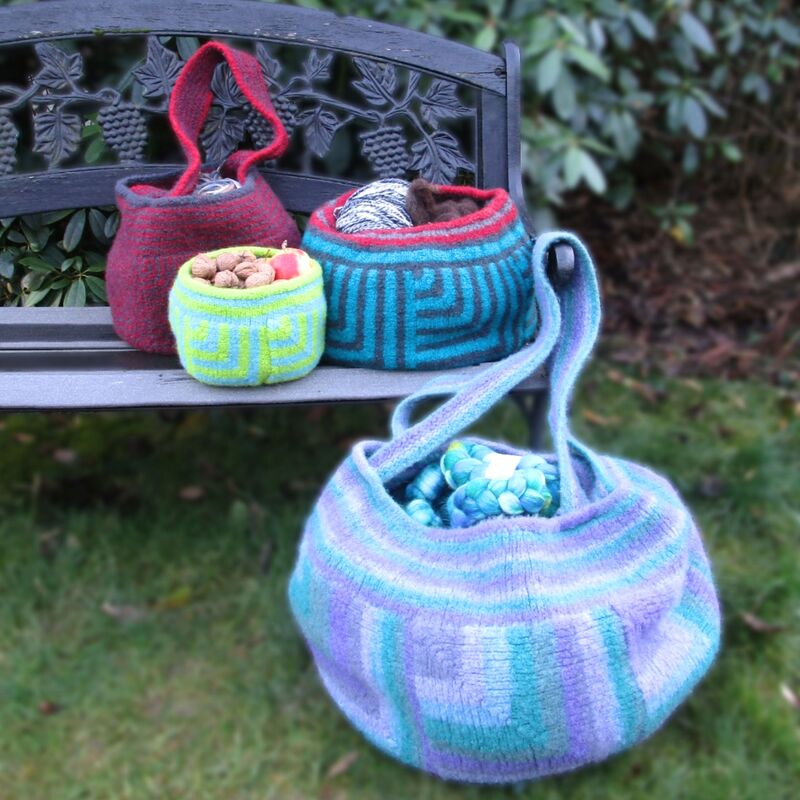 Taschen und Körbe kann man nie genug haben und sie können auch nie groß genug sein. Strickfilztaschen sind besonders toll, weil sie mitwachsen, wenn man mal mehr unterbringen muss.
