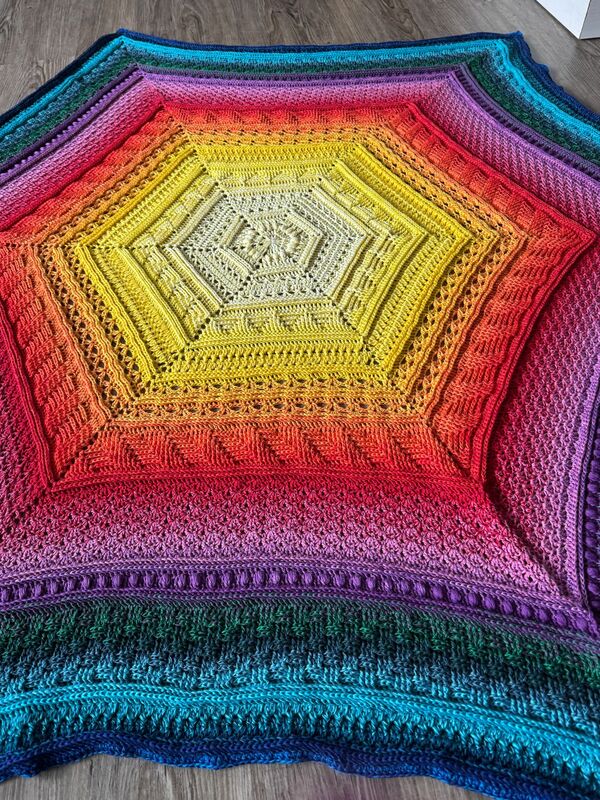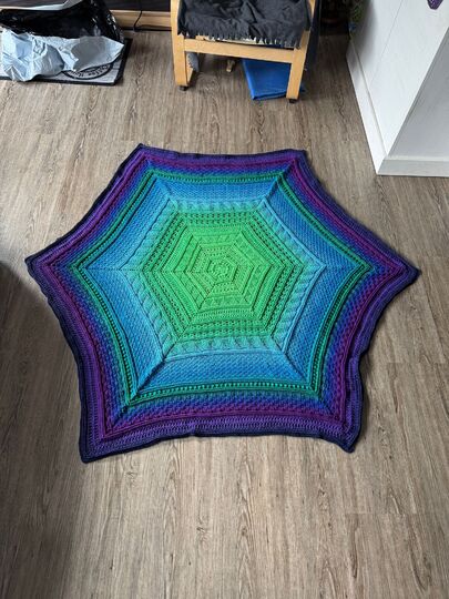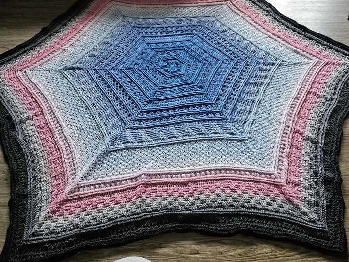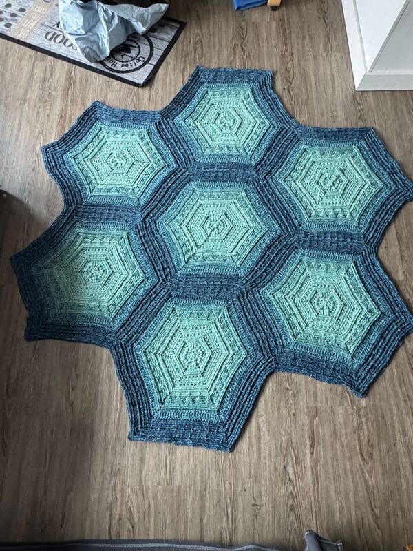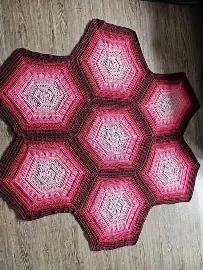 Anleitung Baucis: Für eine Hexagon Decke in 7 Teilen. Die Anleitung ist auf ca 7x 400/4 plus ca 700/4 Außenfarbe ausgelegt. Man kann aber auch weitere kleine Hexas hinzufügen.