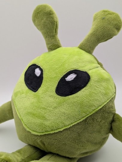 Nähe dir dein individuelles Wendekuscheltier! Das Motiv Alien erfordert etwas Applikationserfahrung.