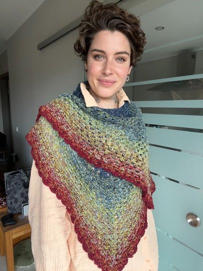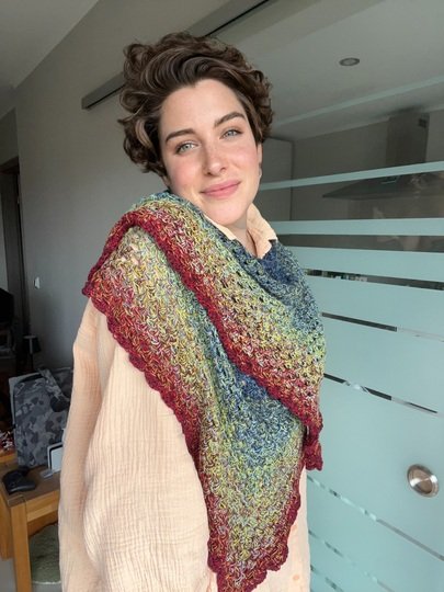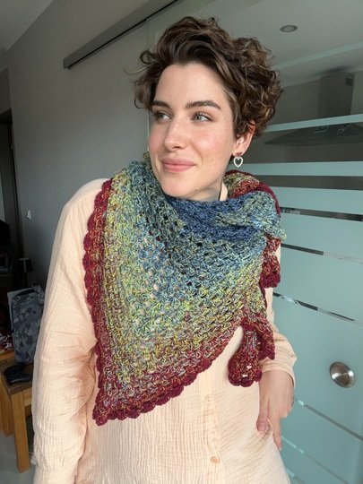 Das Tuch hat eine super witzige Form mit zwei spitzen Ecken – und genau die sorgen für die perfekte Passform. Es legt sich lässig über deine Schultern, sitzt ganz natürlich und bleibt genau da, wo es soll. Ob als leichtes Accessoire über dem Sommerkleid, lässig über einem Shirt oder als Farbtupfer an kühleren Abenden – Granny – Corner macht in jeder Situation eine gute Figur.