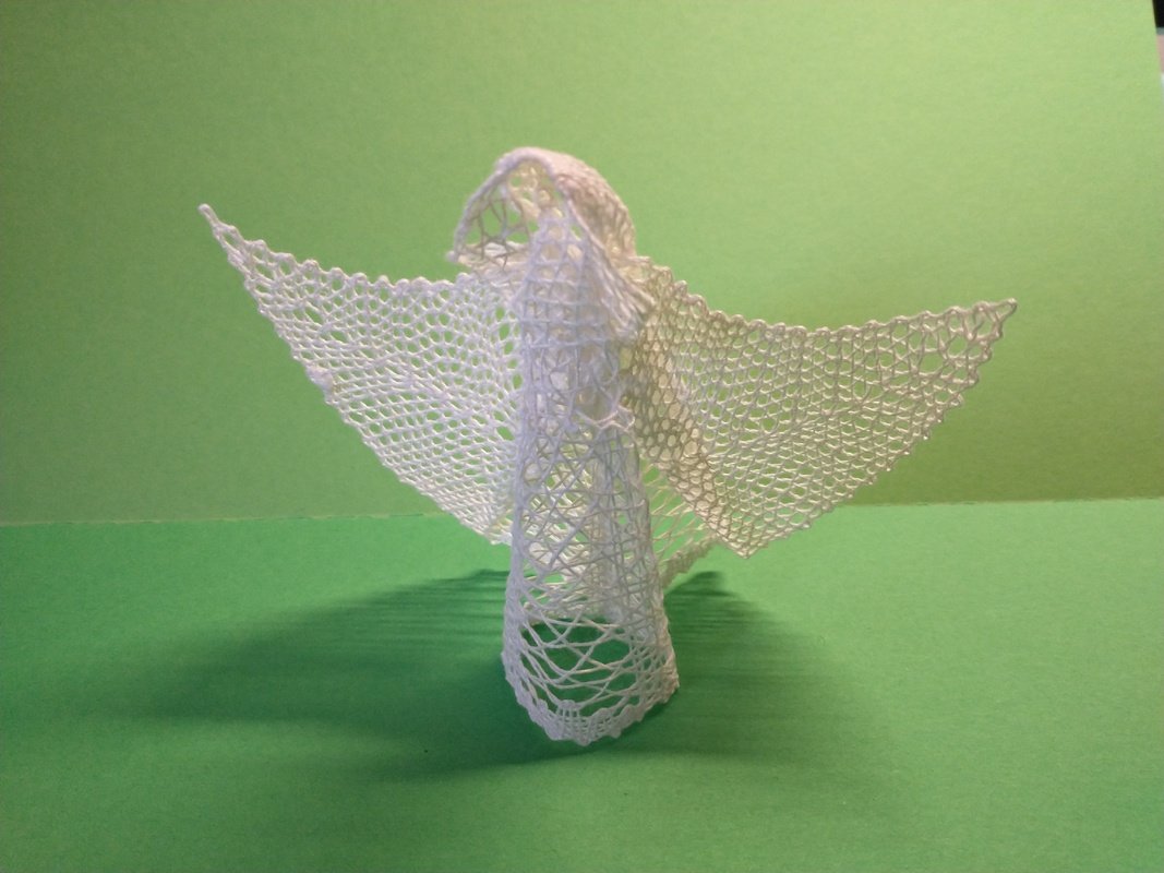 Dieser Engel passt zur geklöppelten Krippe. Siehe Bild Engel mit Maria. Du kanst anderes Material verwenden oder den Klöppelbrief vergrößern