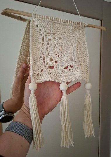 Die hier abgebildeten und beschriebenen Wand Hänger sind etwa 16 x 16 cm groß, plus