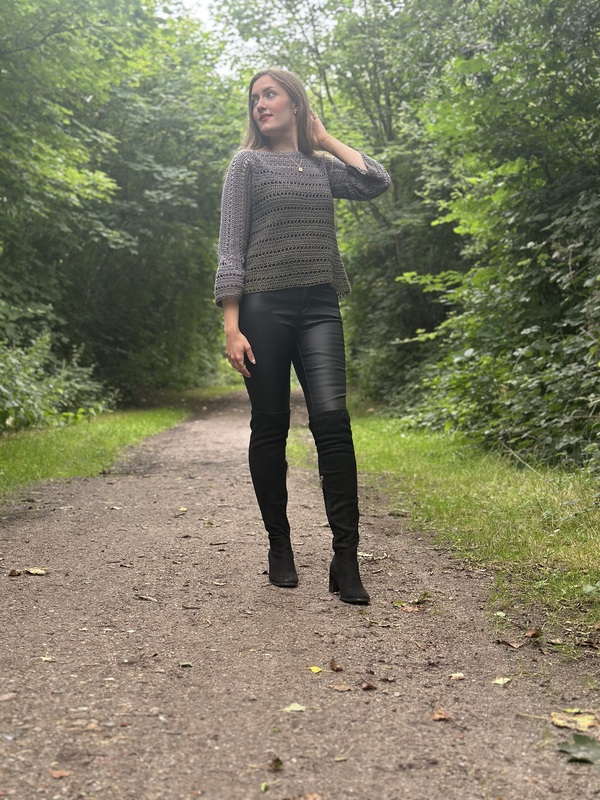 Der 1-Bobbel-Eleganz-Häkelpulli kann an jede Größe angepasst werden.