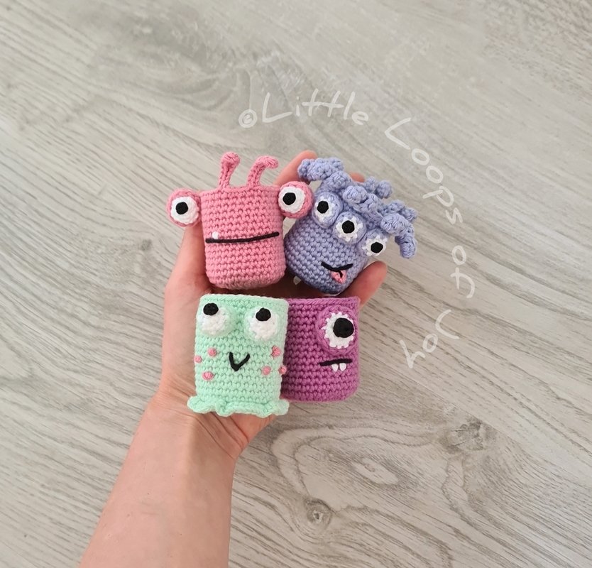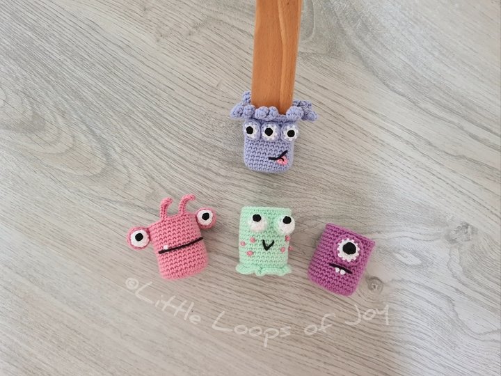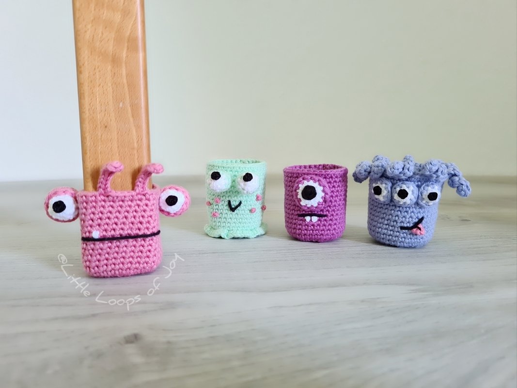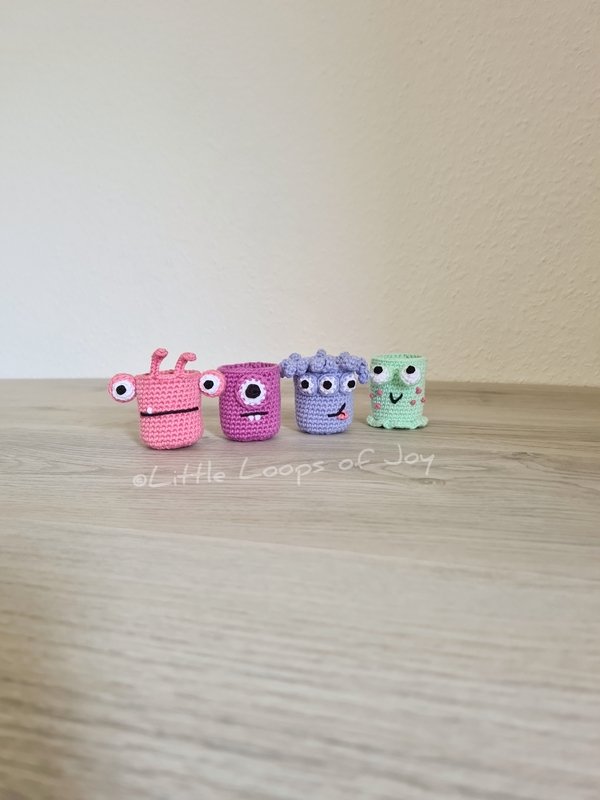 Mit dieser frustfreien Step-by-step Häkelanleitung kann ein süßes und originelles Stuhlsocken-Set im Monster-Design nachgearbeitet werden. Es enthält vier verschiedene Designs, alle liebevoll gestaltet aber leicht nachzuarbeiten.