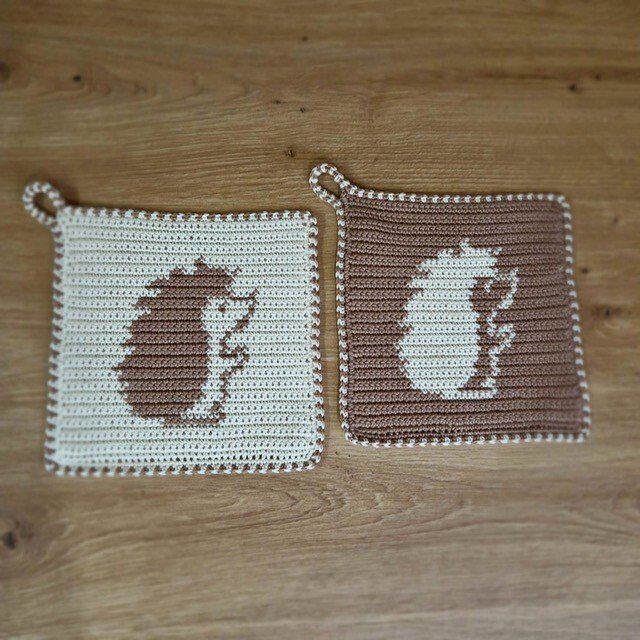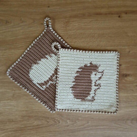 Diese Topflappen sind der Klassiker unter den gehäkelten Topflappen. Sie schützen die Hände nicht nur vor z.B. zu heißen Topfgriffen, sondern sie verschönern auch jede Küche. Gleichzeitig können sie auch als Untersetzer verwendet werden.