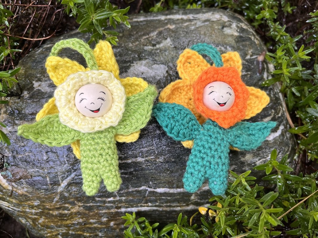 Diese kleinen, fröhlichen Blumenkinder verbreiten überall gute Laune. Sie sind als Taschenbaumler, Schlüsselanhänger, Geschenkanhänger oder als Mitgebsel für liebe Menschen etwas ganz Besonderes.