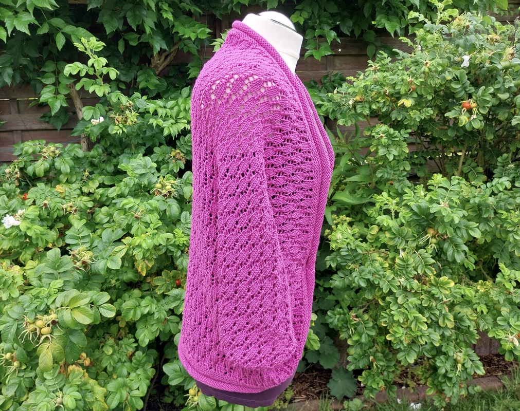 Du bekommst eine 6-seitige PDF-Datei, die die Anleitung in Textform, eine Strickschrift und ein Schnittmuster beinhaltet.