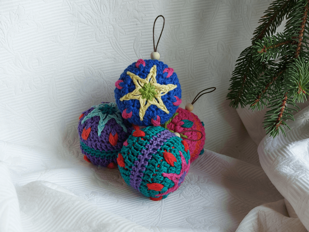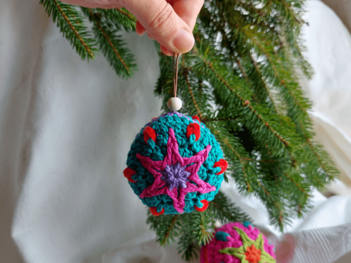 Die Weihnachtskugel Sternfunkeln fasziniert mit einer Farbexplosion im Boho-Look, sie ist aber auch zweifärbig der Hingucker.