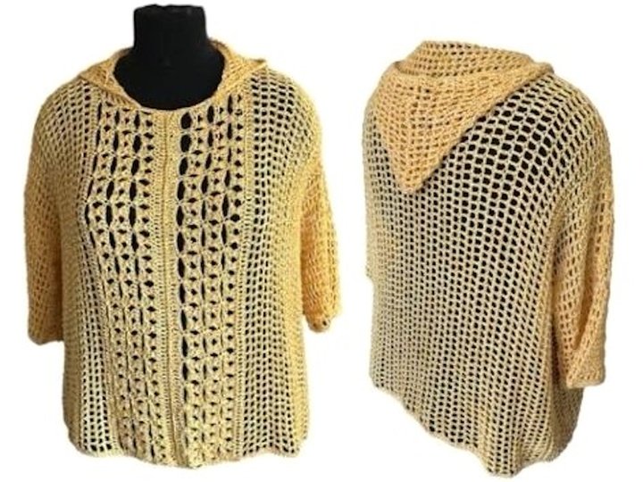 "Chaca-Chaca"- ein Oberteil was im Frühling und Herbst und im Sommer am Strand getragen werden kann. Es kann sehr leicht in der Länge und Breite angepasst werden und es kann jedes Garn verwendet werden. Ich habe mir das Shirt im Urlaub gehäkelt und hatte dort vor Ort Acrylgarn in dieser tollen Farbe gefunden. Es kann auch 4-fädiges Bobbelgarn oder Baumwollgarn verarbeitet werden.