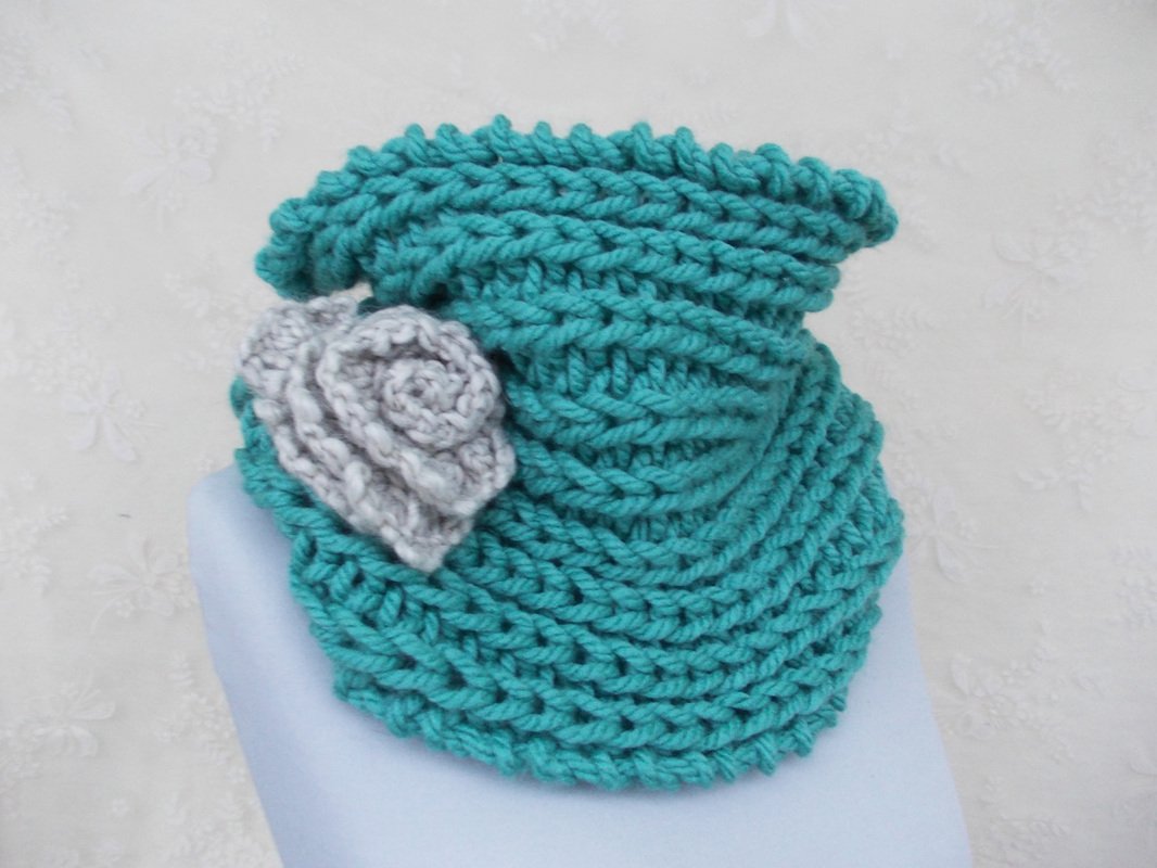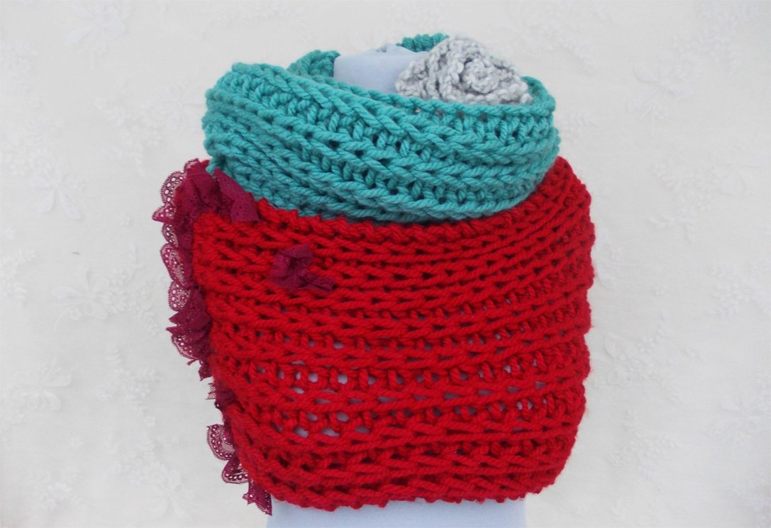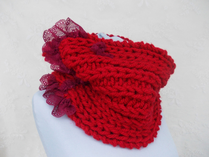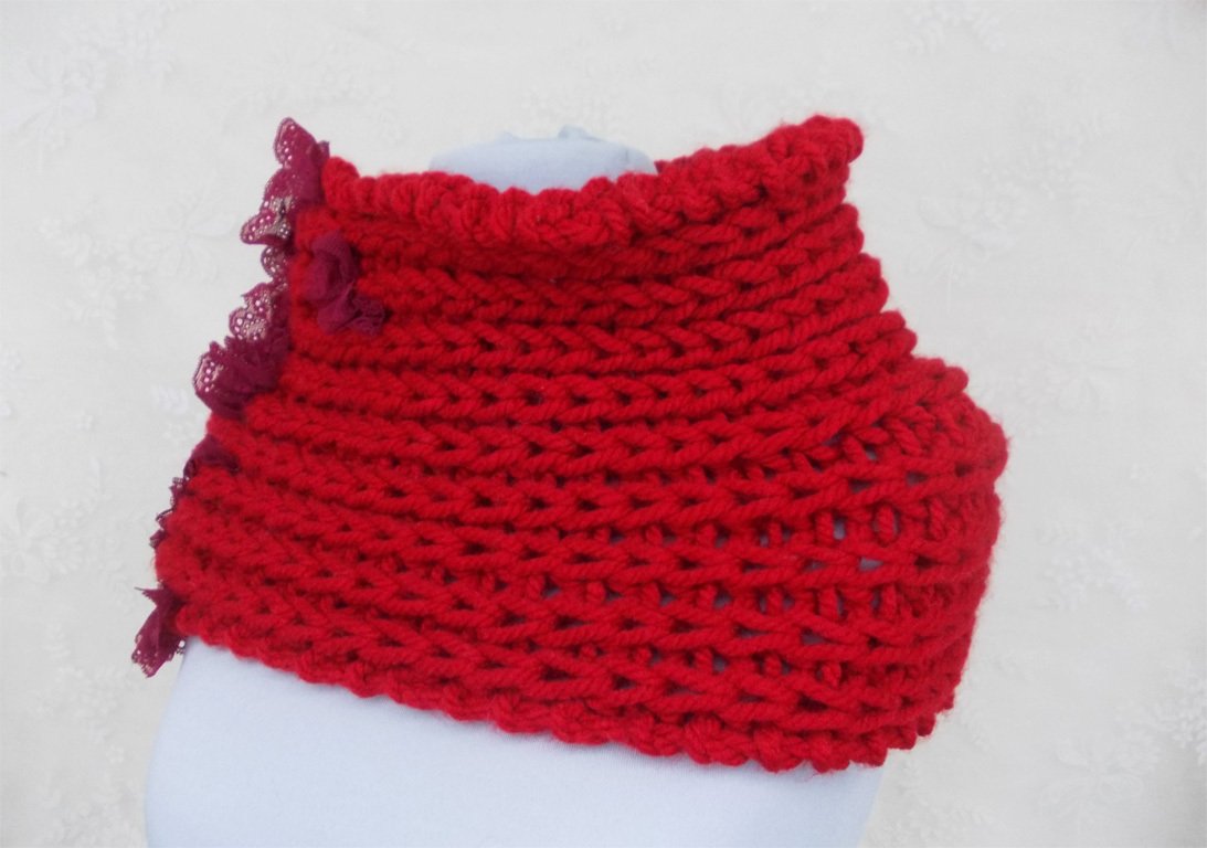 Die Anleitung enthält nicht die Anleitung der Strickblume (Titelbild u. a.), sondern die Anleitung für den Rundschal und die Beschreibung, wie der Schal mit Spitzenrüschen etc. verziert werden kann.