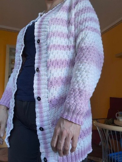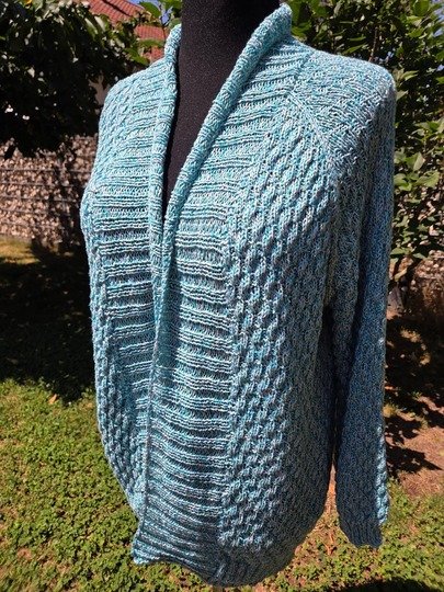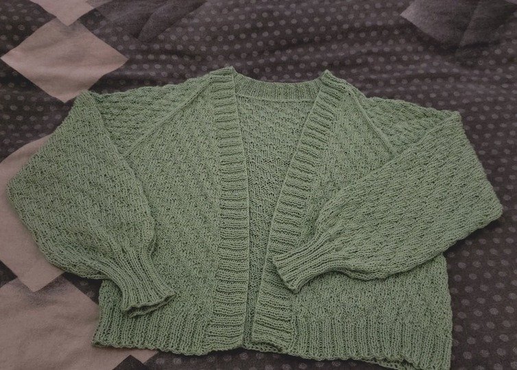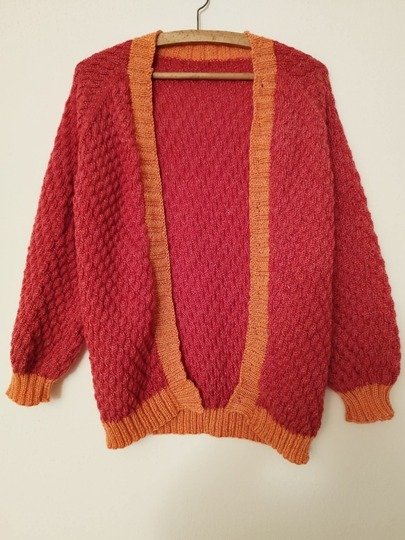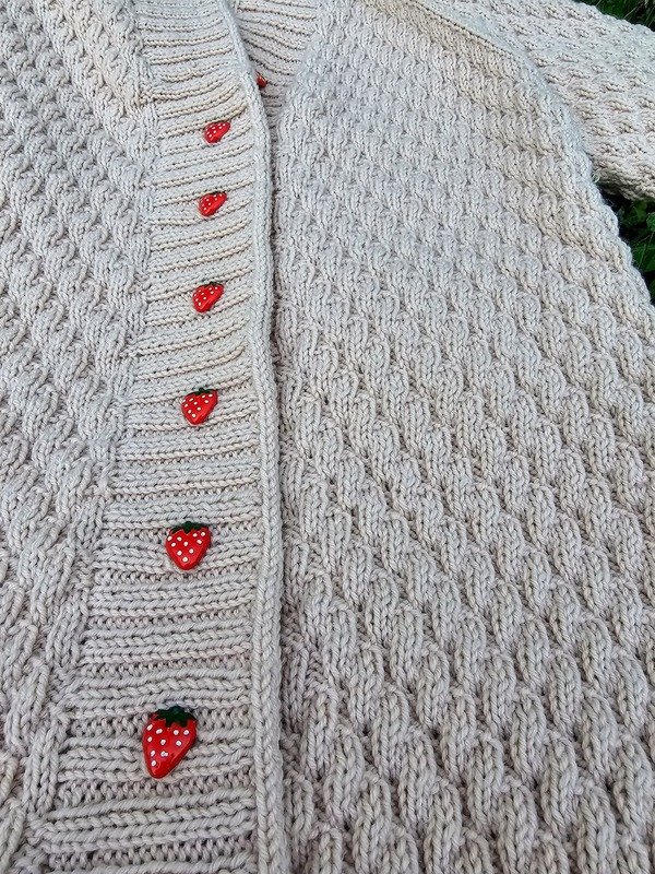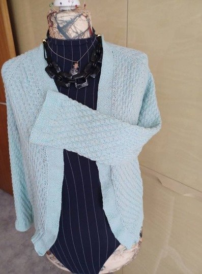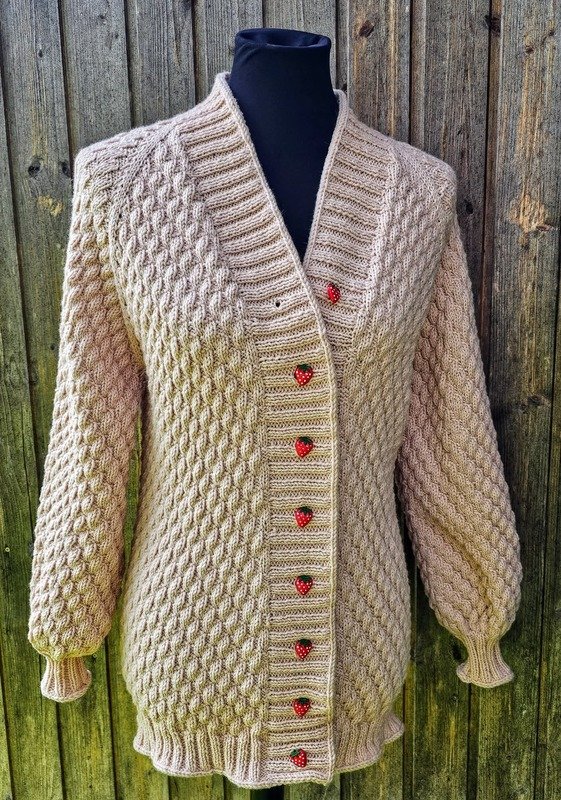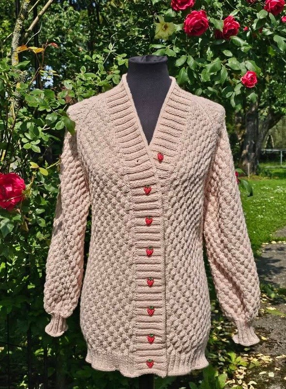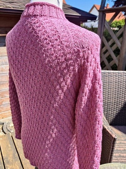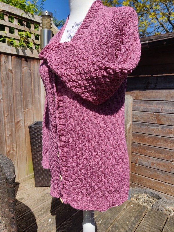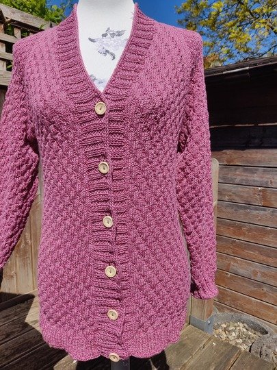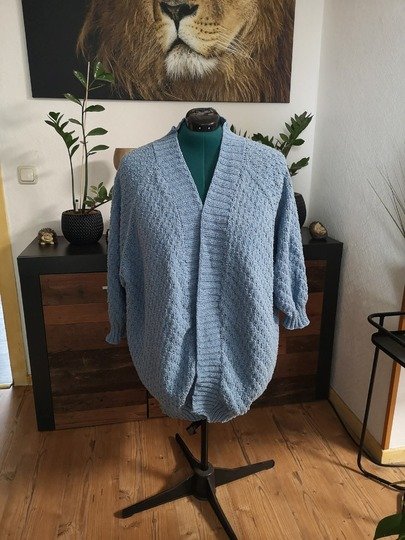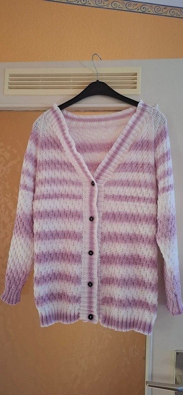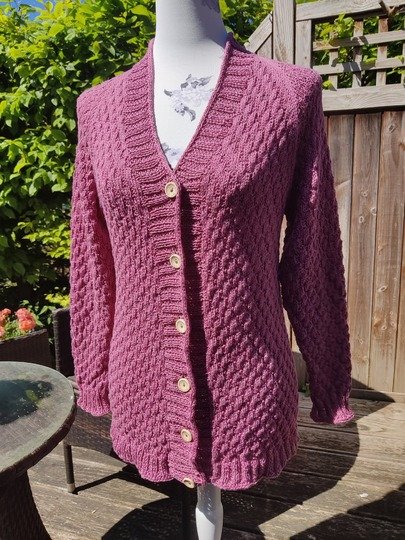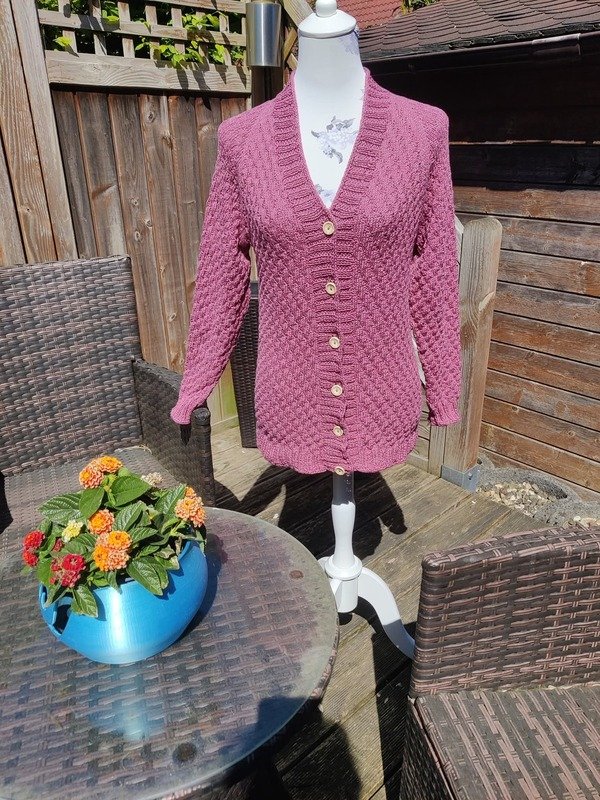 Da diese Strickjacke RVO gearbeitet wird, kann jede beliebige Größe gestrickt werden.