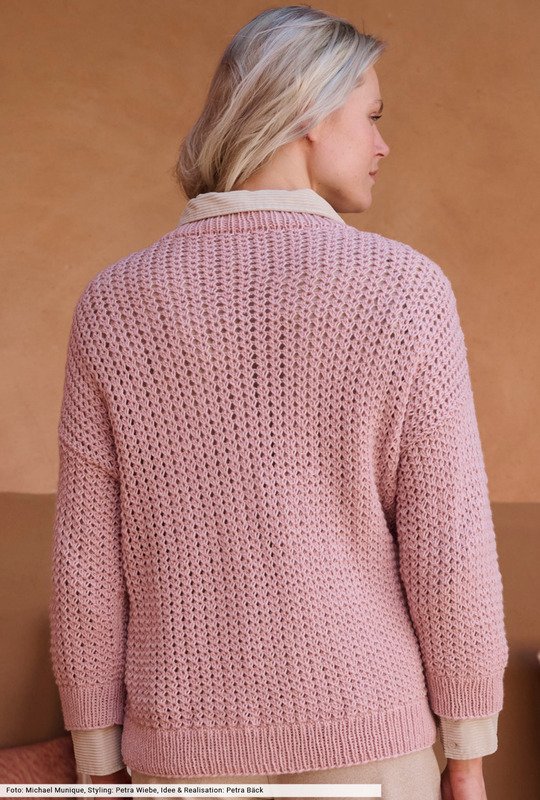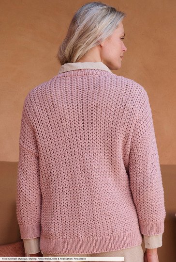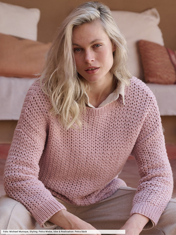 Leicht, weich und extra luxuriös – bei diesem Garn aus Schurwolle und Cashmere stimmt einfach alles. Deshalb brauchen Sie hier auch keine Kompromisse eingehen. Die lässige Passform, das einfache Überzugmuster und der sanfte Roséton machen daraus einen aparten Pulli, der sich jedem Stil anpasst und der Sie bis weit in den Winter hinein begleiten wird. Tipp: Nach der erste Wäsche "bauschen" sich die Maschen etwas auf und das Gestrick gewinnt an Volumen.