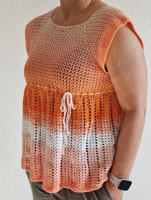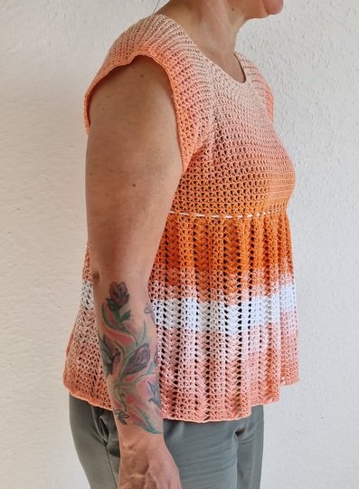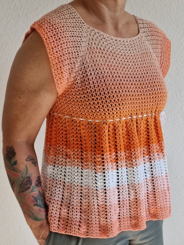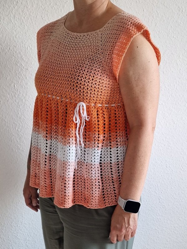 Das Shirt ist leicht an alle Größen anpassbar und kann von Größe S-3XL gehäkelt werden.