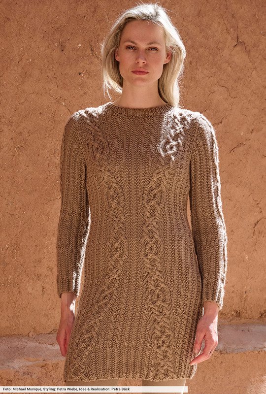 Weich, warm und wunderbar weiblich: Dieses Strickkleid aus strapazierfähigem Wollmischgarn umhüllt sanft die Körperkonturen und zeigt, wie sich natürliche Eleganz mit modischen Feingefühl aufs Schönste vereinen lässt. Dafür sorgen markante Zopfstreifen, die sich wunderbar der taillierten Silhouette des Kleides anpassen. Kleine Hilfestelliung: Die Zöpfe gelingen dir mit HIlfe unserer übersichtlichen Strickschrift, die Zu- und Abnahmen für die Taillierung haben wir in unserer Anleitung genau beschrieben.