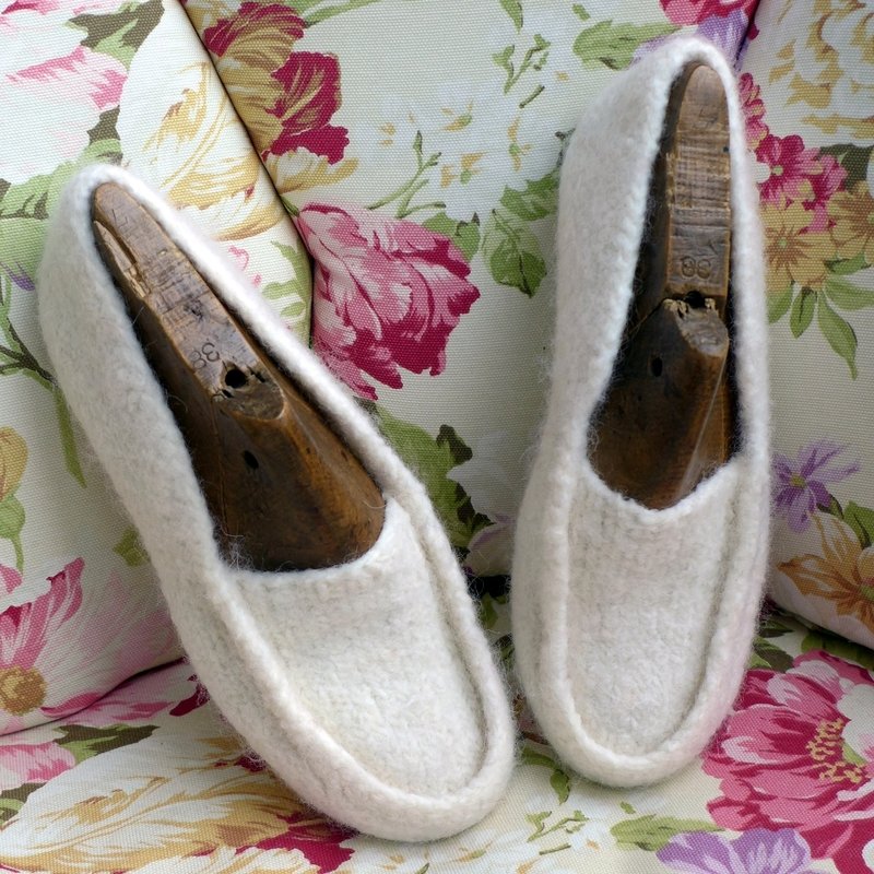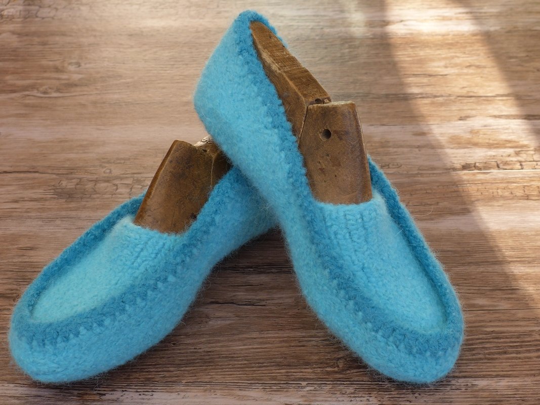 Filzschuhe müssen nicht unförmig aussehen! Sie können kuschlig warm und elegant sein. Nach meiner Anleitung kannst Du Filzschuhe in Mokassinsform in den Größen 22 bis 47 fertigen.