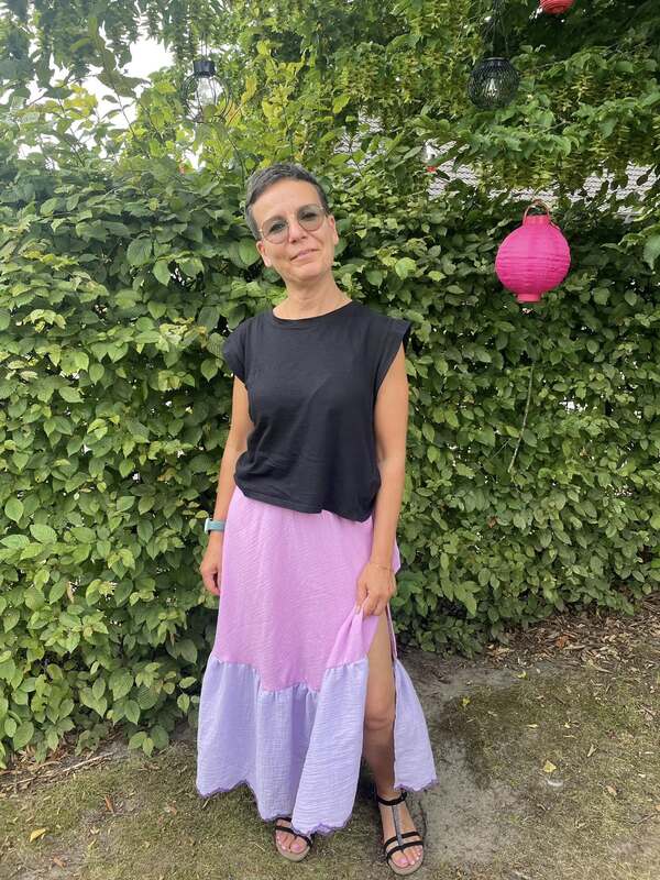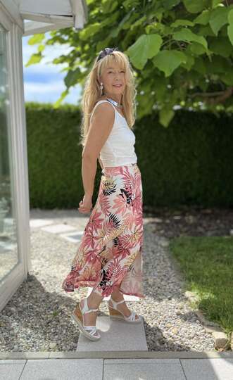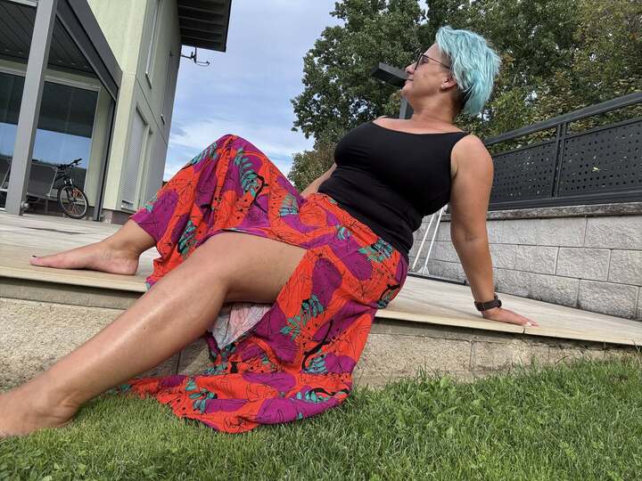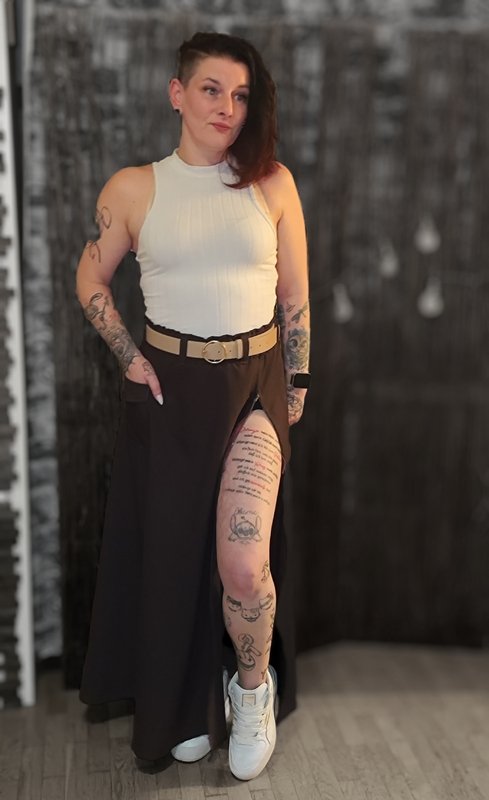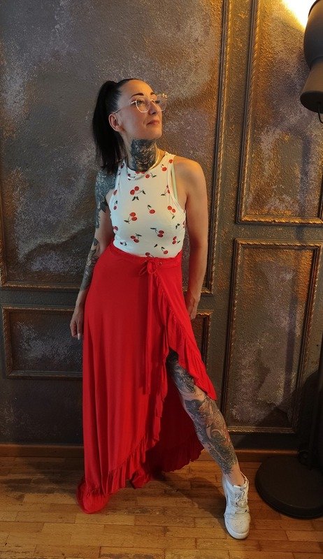 Ich zeige dir hier, wie du einen Rock mit Beinschlitz und Rüschen nähen kannst.