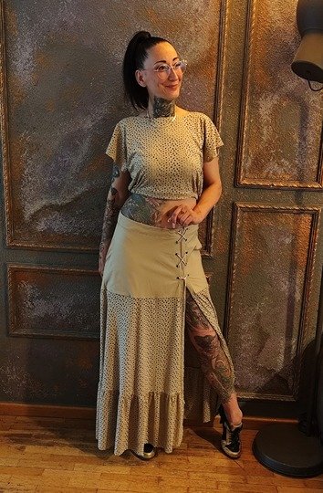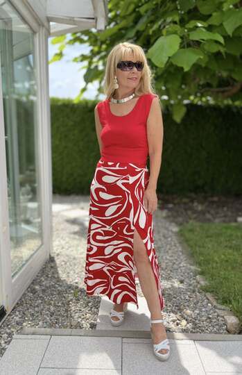 Du kannst die Länge, Schlitz und Rüsche selbst bestimmen.