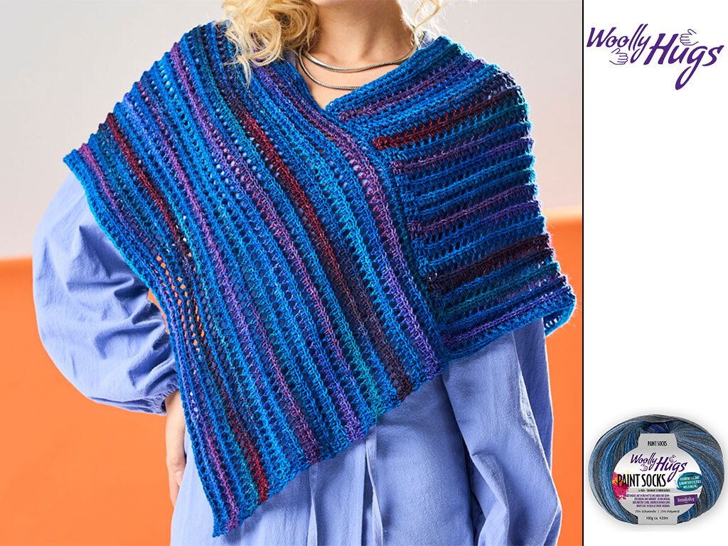 Häkle dir einen luftig-leichten Poncho, der mit den brillanten Farben und der tollen Wirkung von Woolly Hugs PAINT SOCKS jeden Look zum Strahlen bringt. Perfekt für laue Sommerabende, einfach nachzuarbeiten und ein echter Hingucker!
