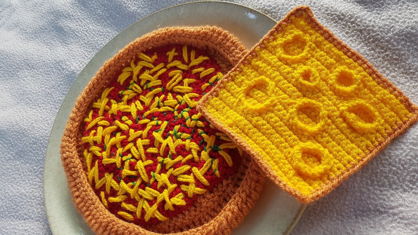 Kuschelig weich, kindersicher und waschbar- ideale Begleiter für das Spiel im Kaufladen- Pasta, Pizza, Waffeln und Käse.