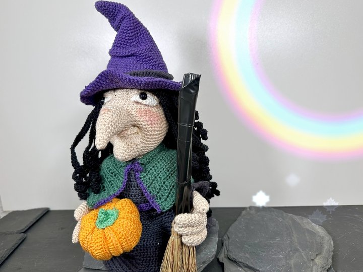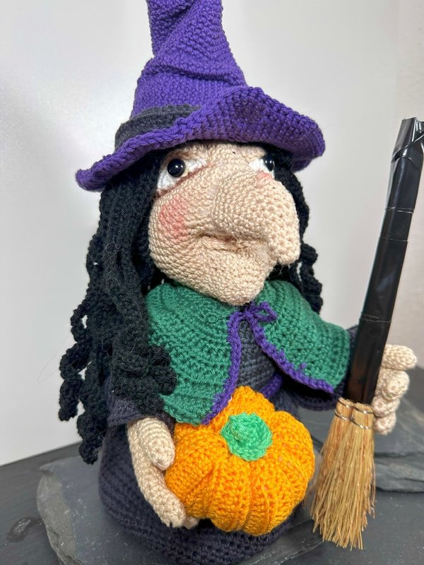 Die Hexe ist aufwändig zum häkeln. Es gibt sehr viel zu häkeln, und die Anleitung hat 31 Seiten. Es ist KEINE ANFÄNGER-ANLEITUNG. Die Anleitung enthält sehr viele Bilder uns ist Schritt für Schritt erklärt.
