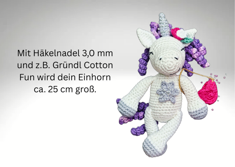 ●Optional: feines Glitzergarn für Mähne und Horn (z. B. Rico Metallic No. 40)