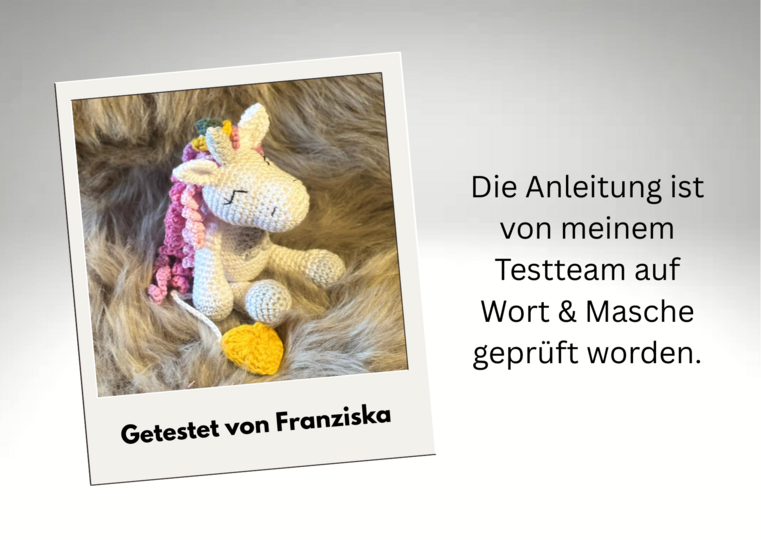 Diese Anleitung ist urheberrechtlich geschützt.Verkauf, Weitergabe, Abdruck oder Veröffentlichung (auch teilweise) sowie Übersetzung der Anleitung ist ausdrücklich untersagt.Fertige Auryn-Einhörner dürfen in kleinen Mengen (max. 10 Stück pro Monat) mit Nennung des Designers „Zauberschlinge by Anja“ verkauft werden.