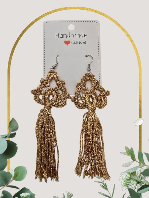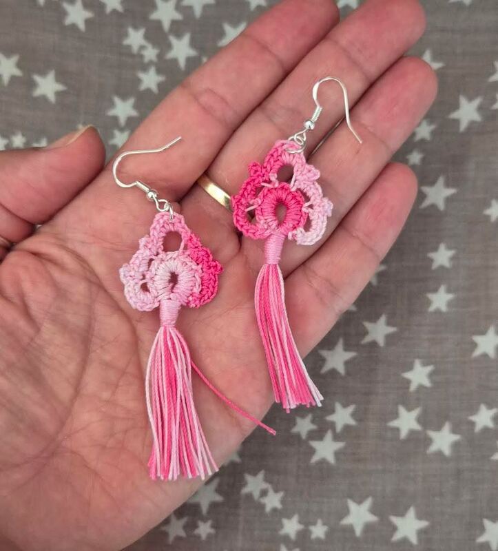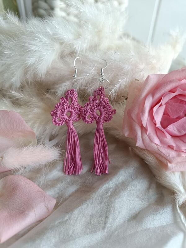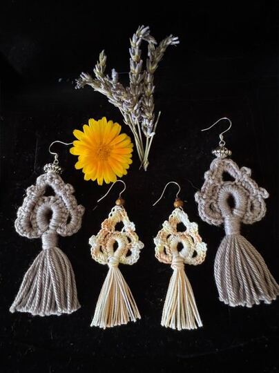Je nach Verwendung des Garn und Variation der Fransen haben die fertigen Ohrringe eine Länge von ca. 7 - 9cm ( ohne Haken ).