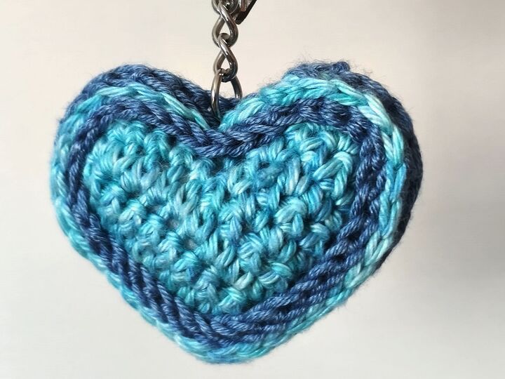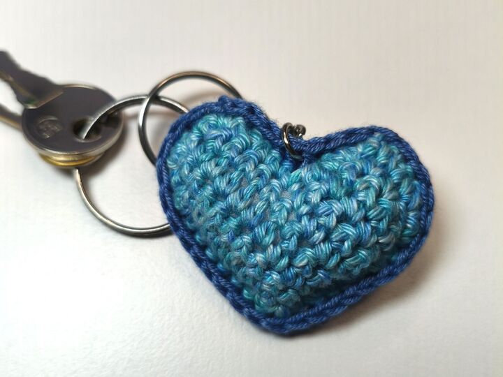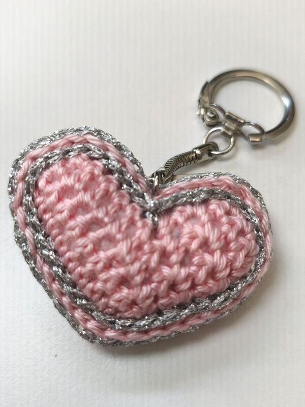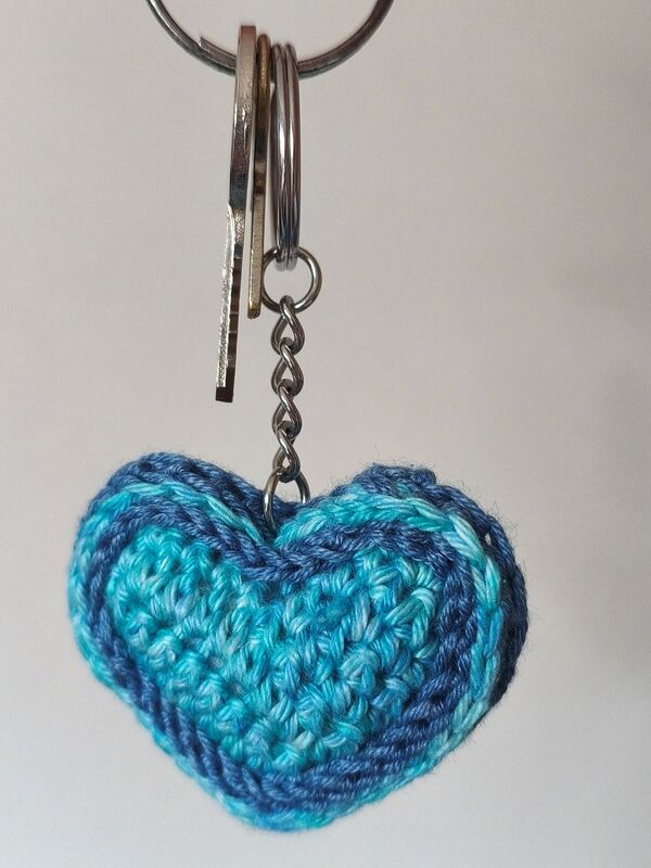 Dieses kleine Herz kann beispielsweise als Geschenk- oder Schlüsselanhänger oder Taschenbaumler gefertigt werden. Es ist für die Resteverwertung von gängiger, glatter Wolle gut geeignet.