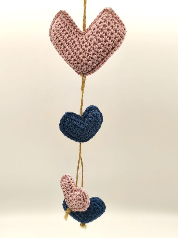 Bei Verwendung eines Baumwoll-Acryl-Mixes sind die Herzen im gelb- orangen Beispiel ausgestopft