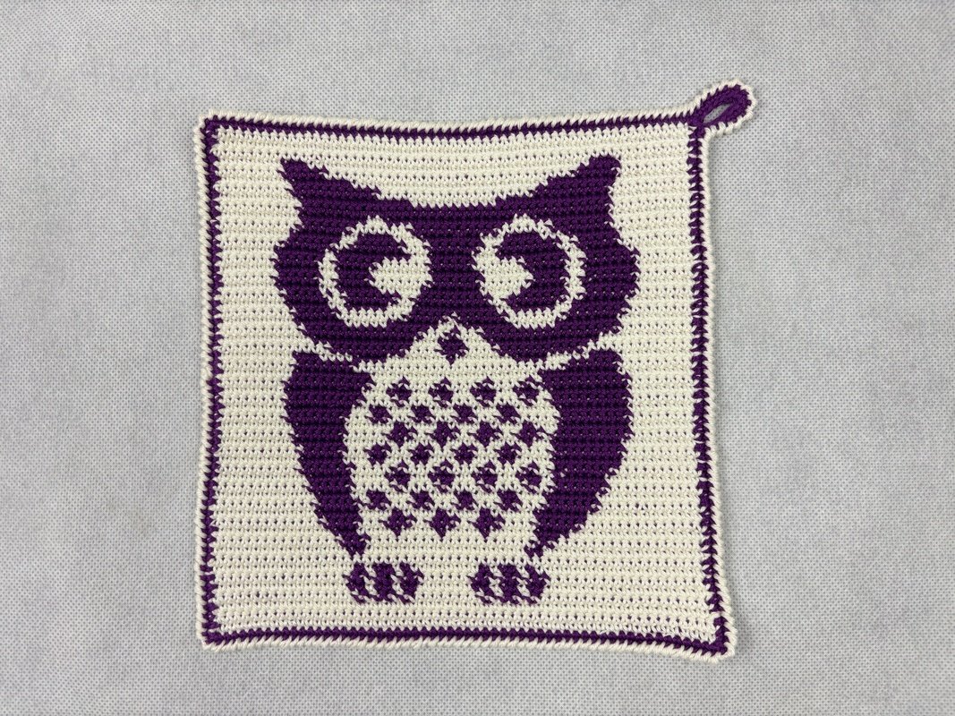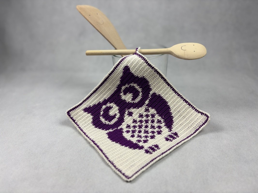 Möchtest Du ein Topflappenset häkeln? Passende Topflappen findest Du in meinem Shop unter: https://www.crazypatterns.net/de/users/view_collection/3244/eulen-eulen-eulen. Da findest Du auch ein Spar Set mit vier zu einander passenden Topflappen.