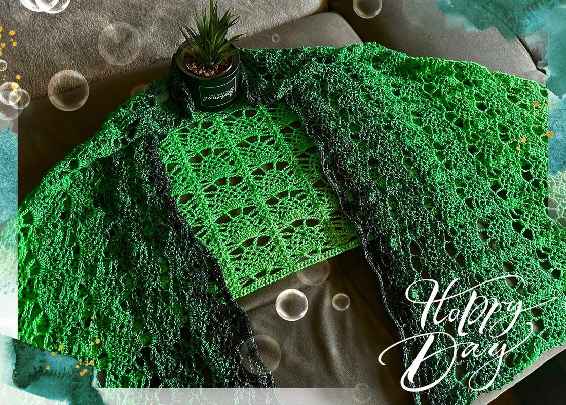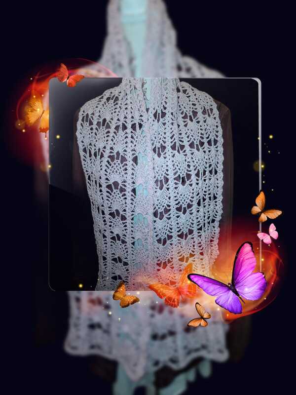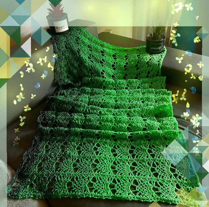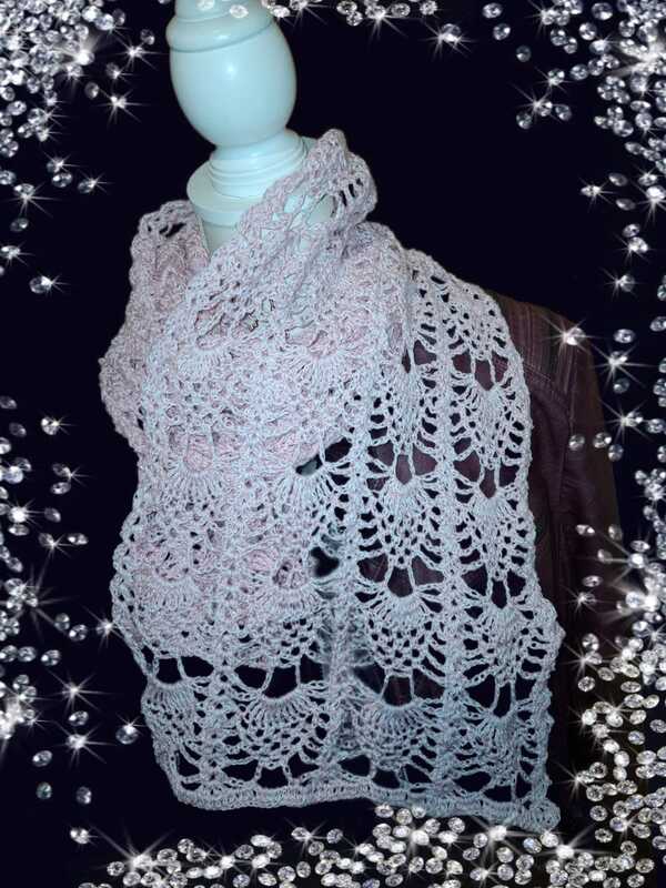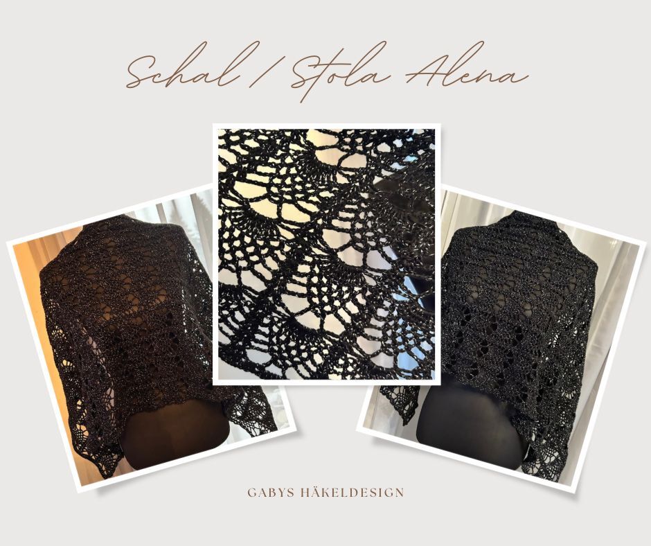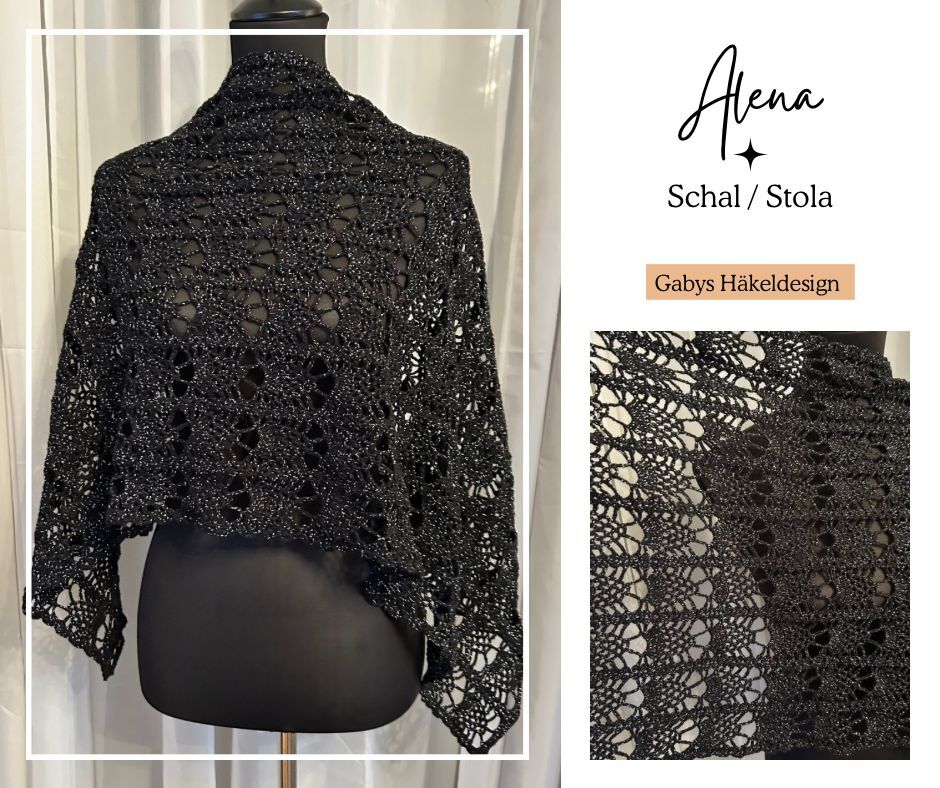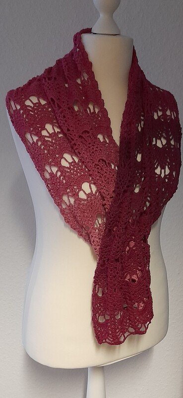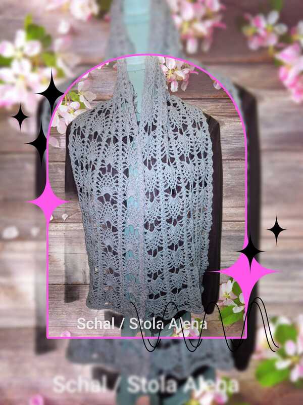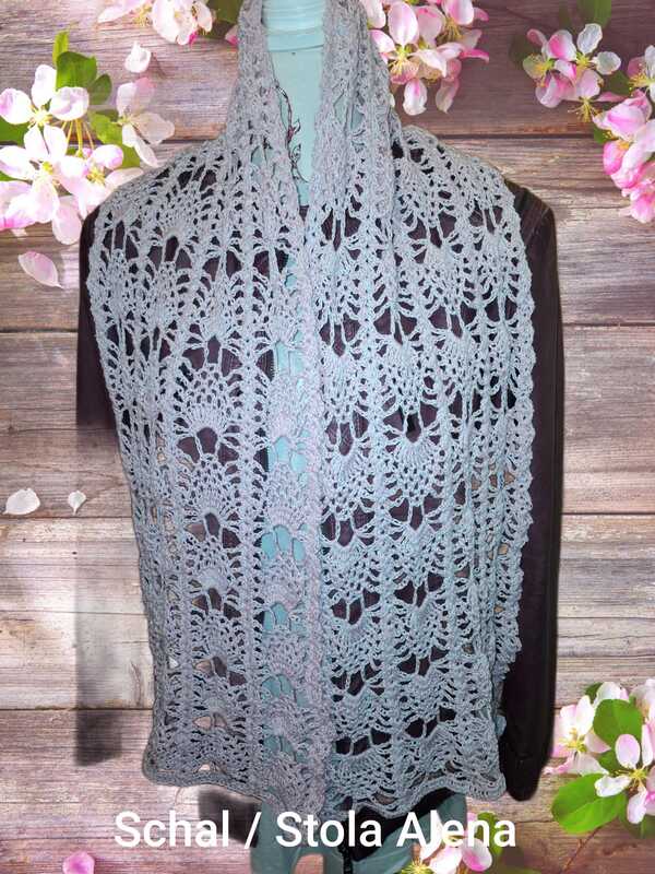Der Sommerschal Alena ist ein leichter Schal mit einem sich wiederholenden Muster. Er kann in jeder gewünschten Größe gehäkelt werden.