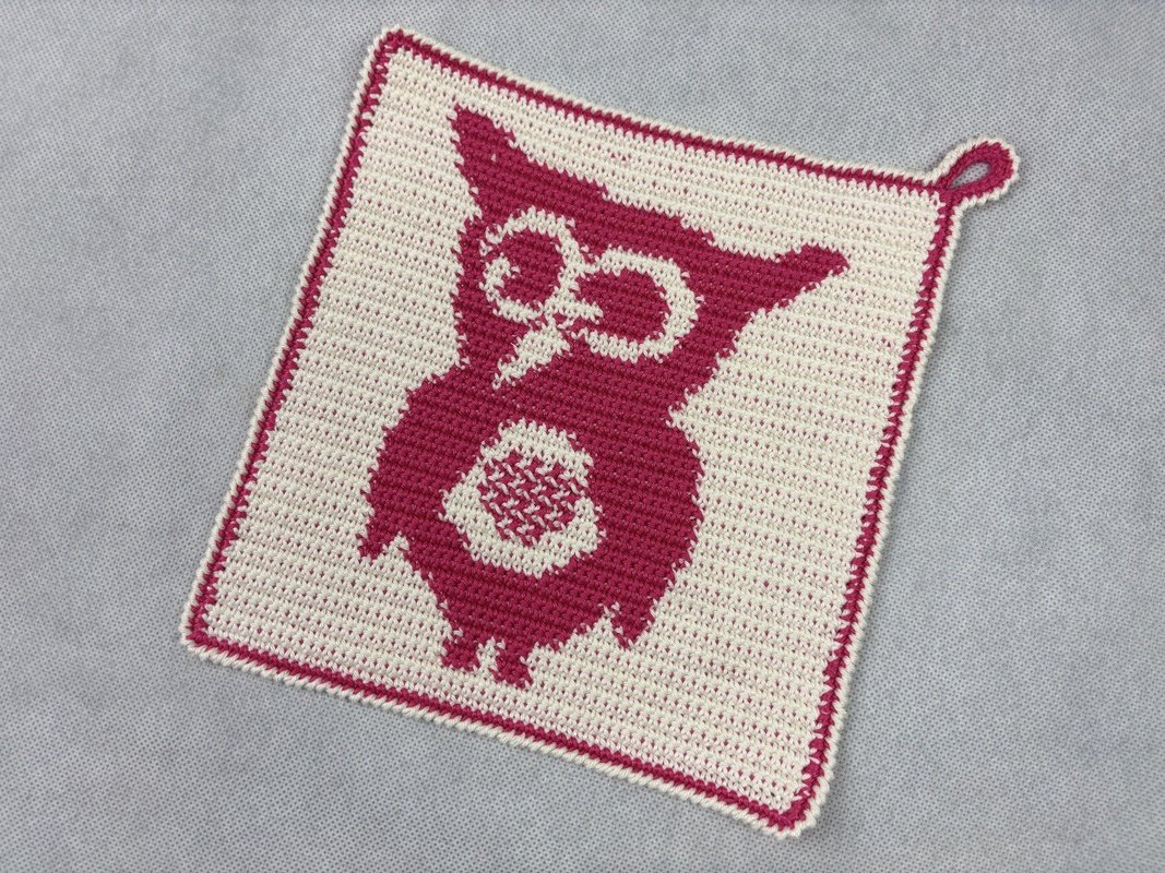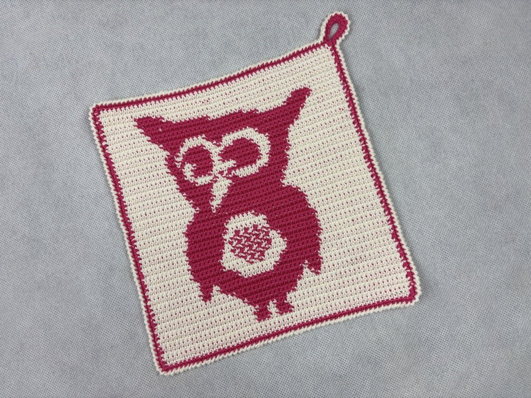 Möchtest Du ein Topflappenset häkeln? Passende Topflappen findest Du in meinem Shop unter: https://www.crazypatterns.net/de/users/view_collection/3244/eulen-eulen-eulen. Da findest Du auch ein Spar Set mit vier zu einander passenden Topflappen.