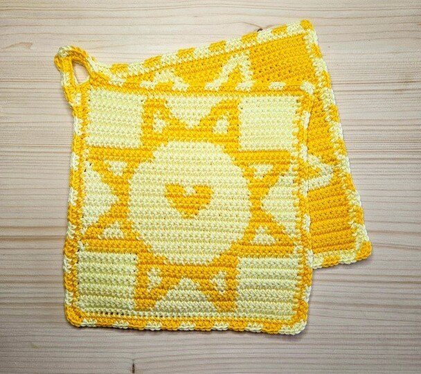 Diese Topflappen sind der Klassiker unter den gehäkelten Topflappen. Sie schützen die Hände nicht nur vor z.B. zu heißen Topfgriffen, sondern sie verschönern auch jede Küche. Gleichzeitig können sie auch als Untersetzer verwendet werden.
