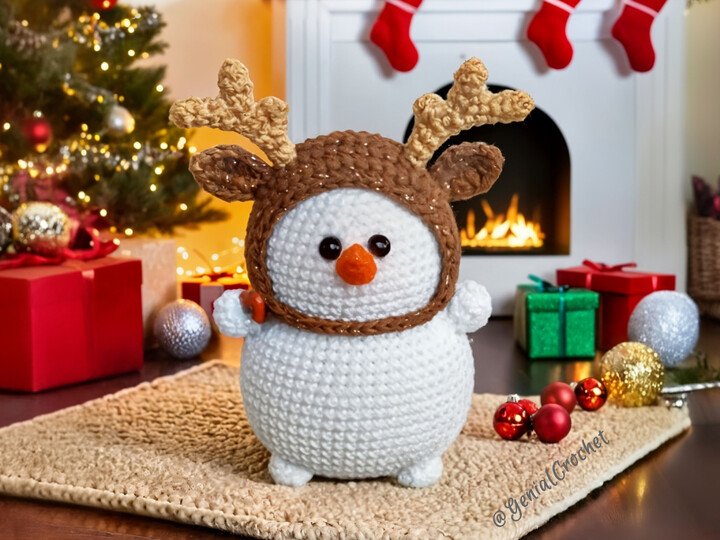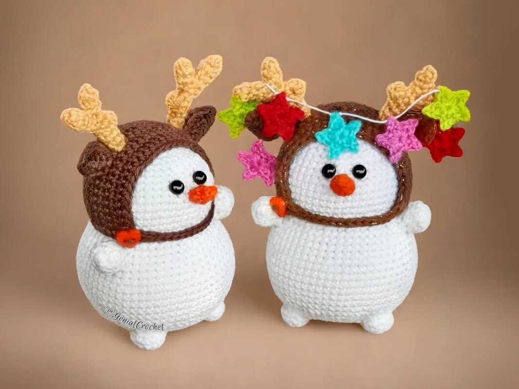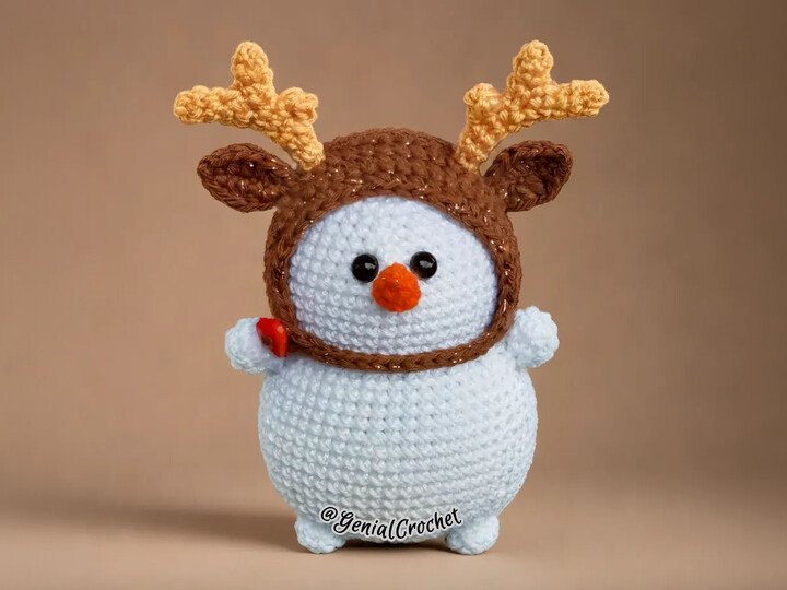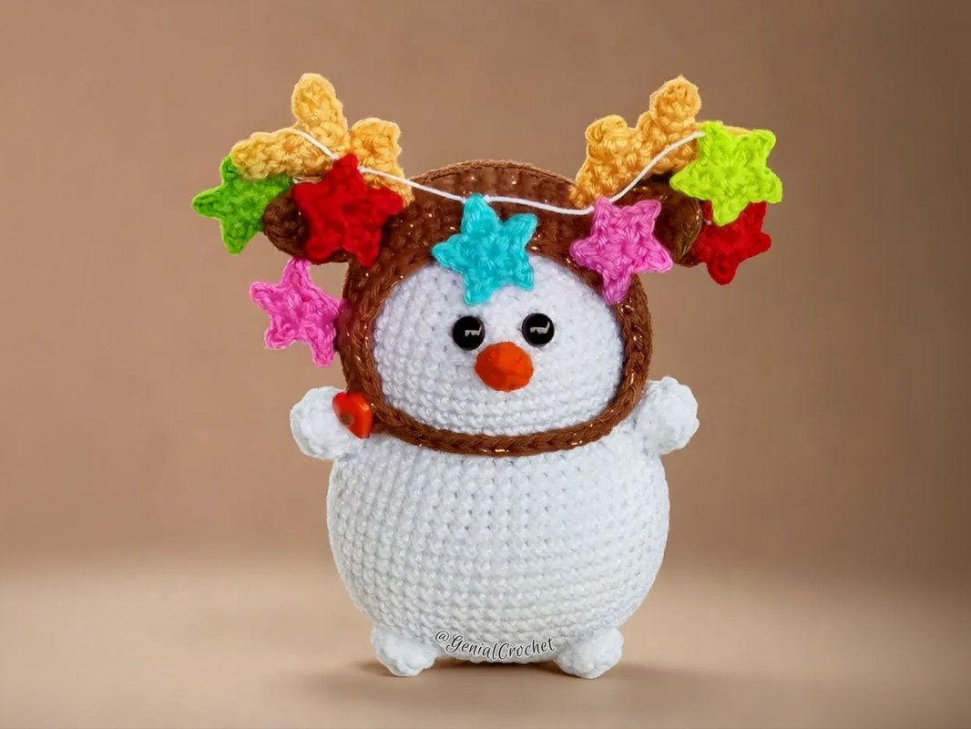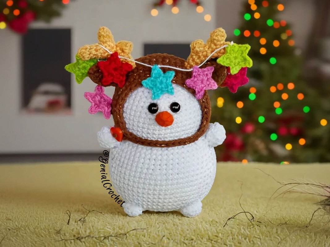 Weihnachtliches Häkelmuster zur Anfertigung eines bezaubernden Schneemann-Amigurumis.